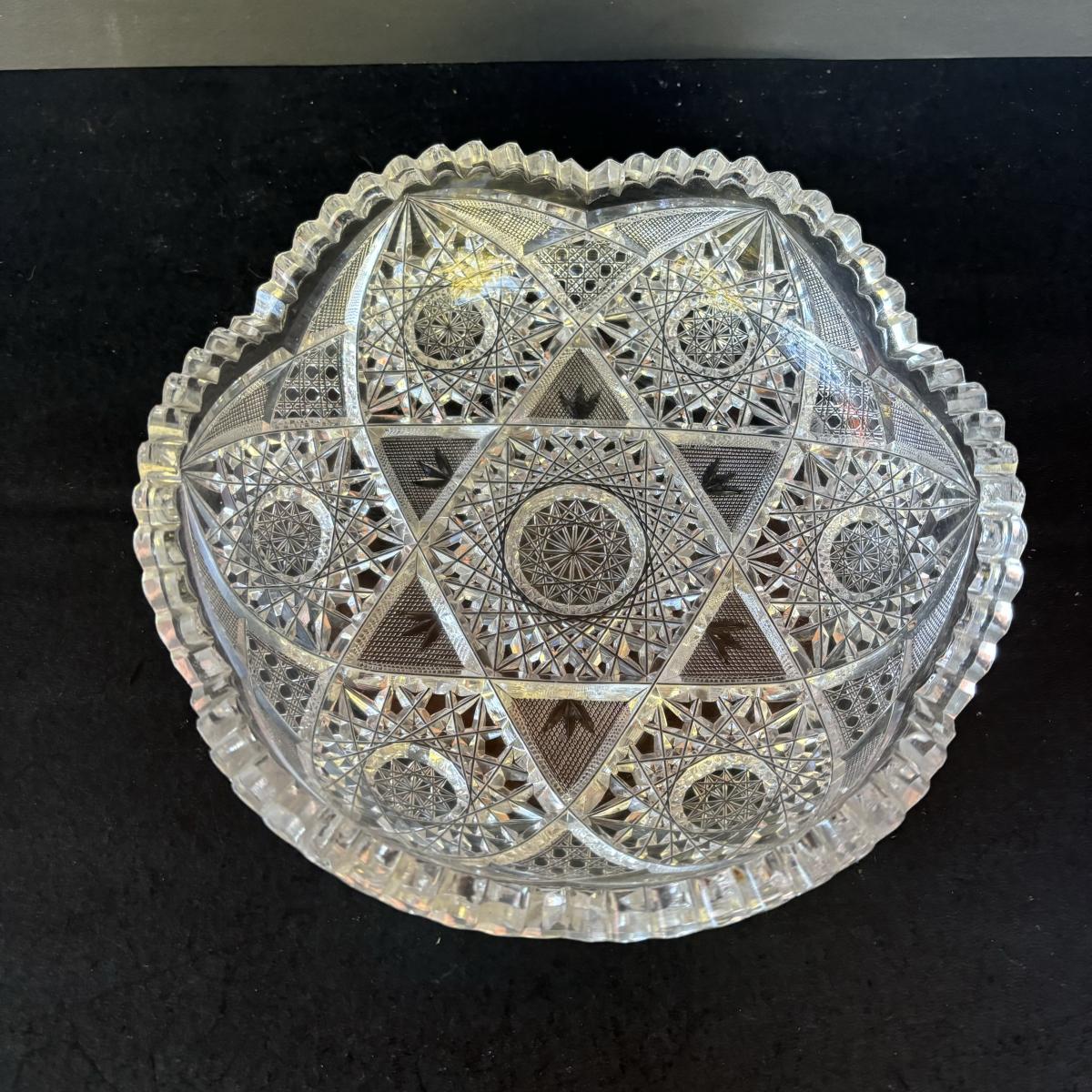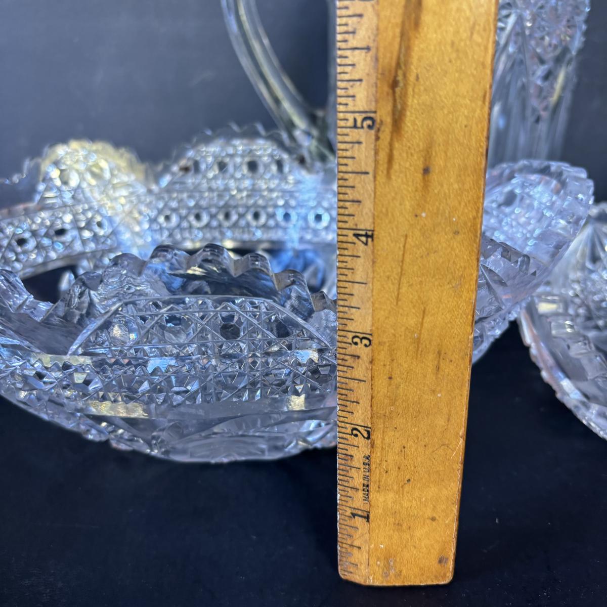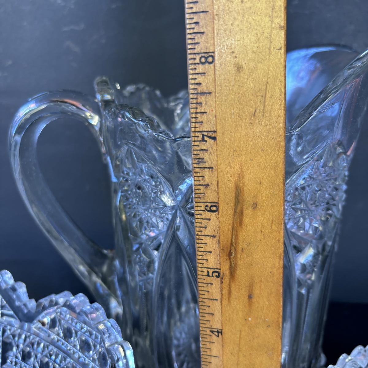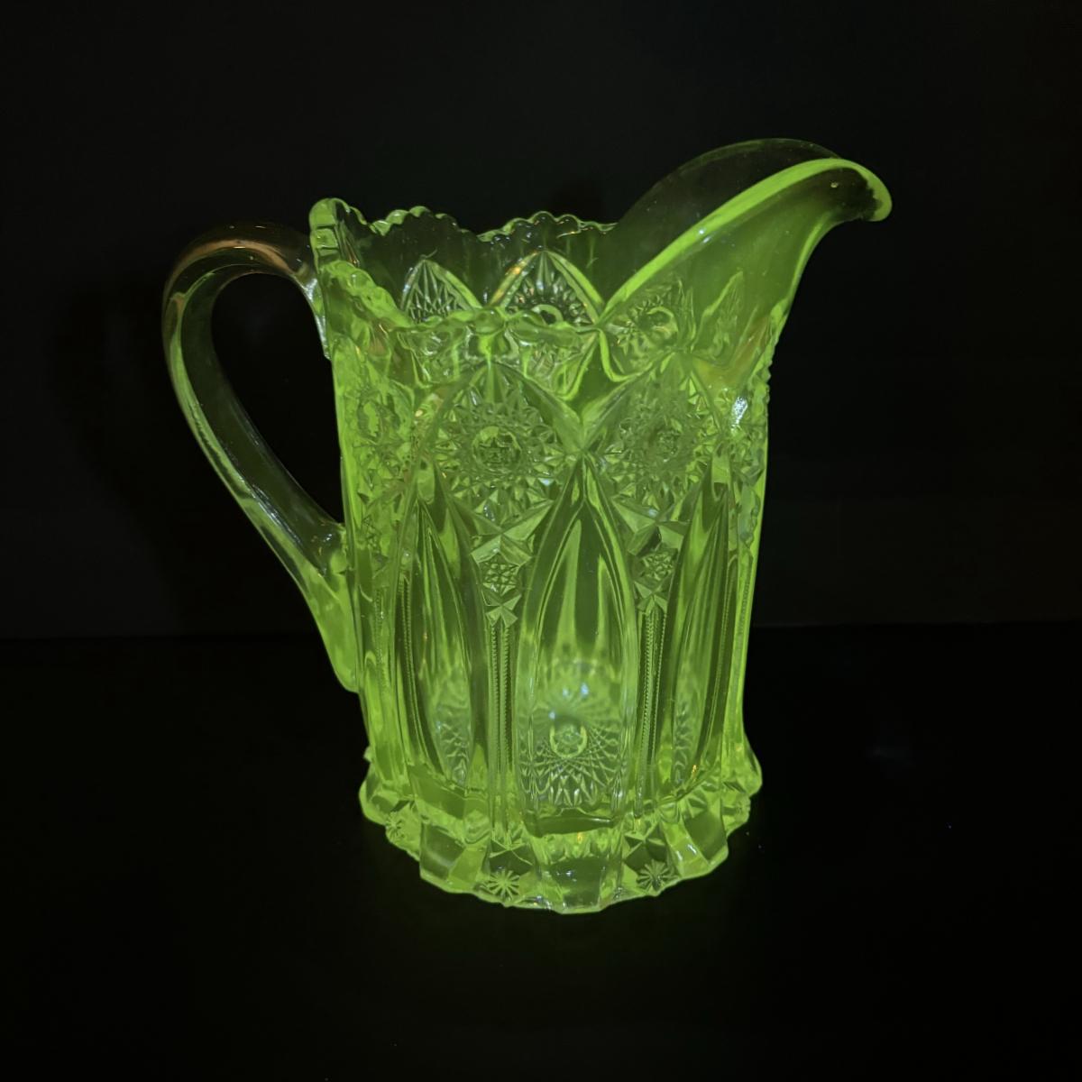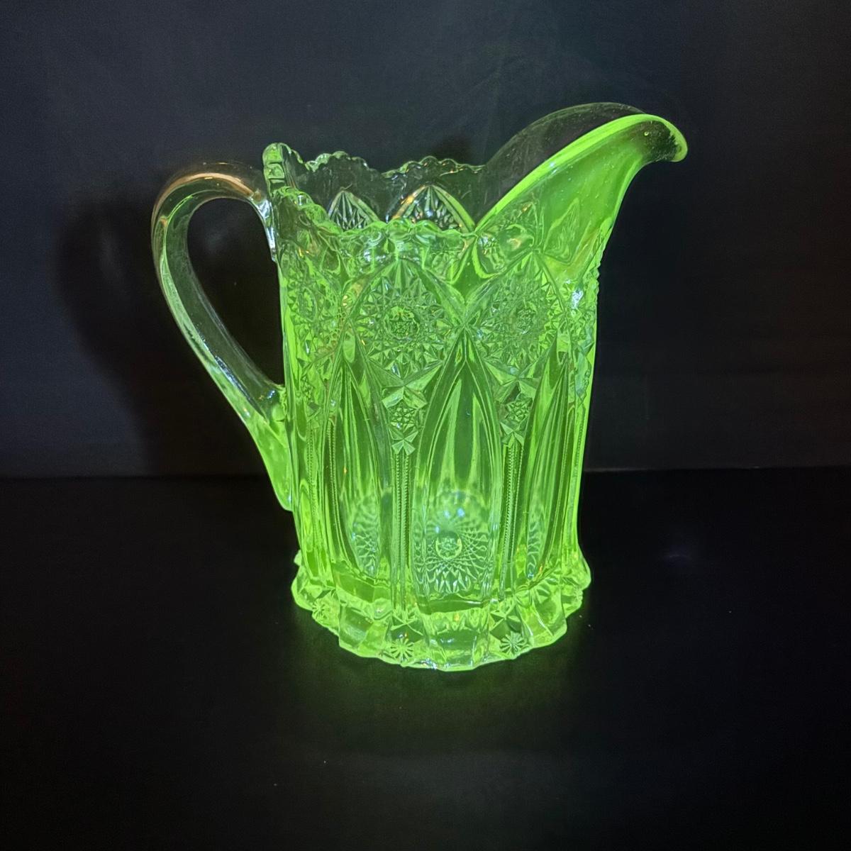 LOT 206: Cut Glass Uranium (or manganese) Pitcher & Cut Glass Bowls