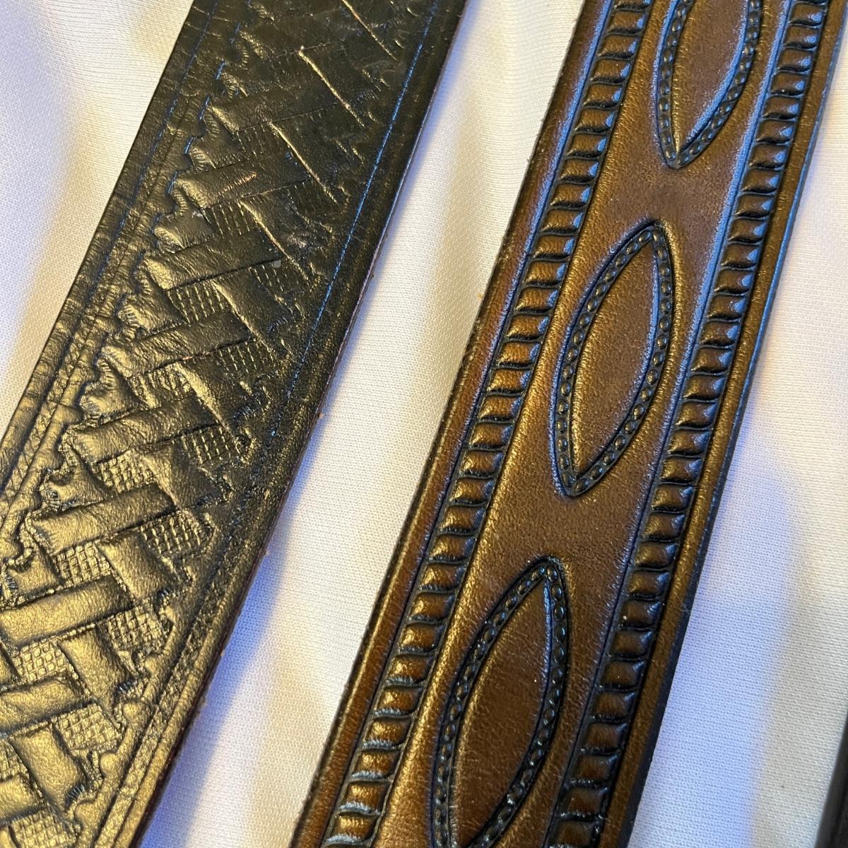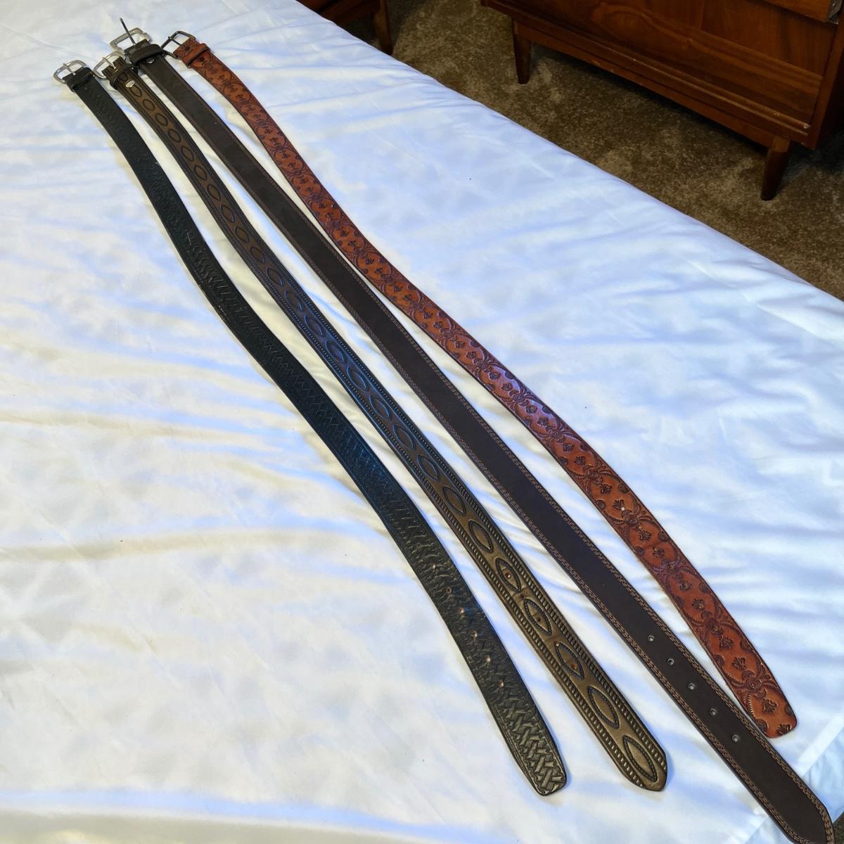 These unsnap so you can add a fancier buckle. All are like new. 44 size.