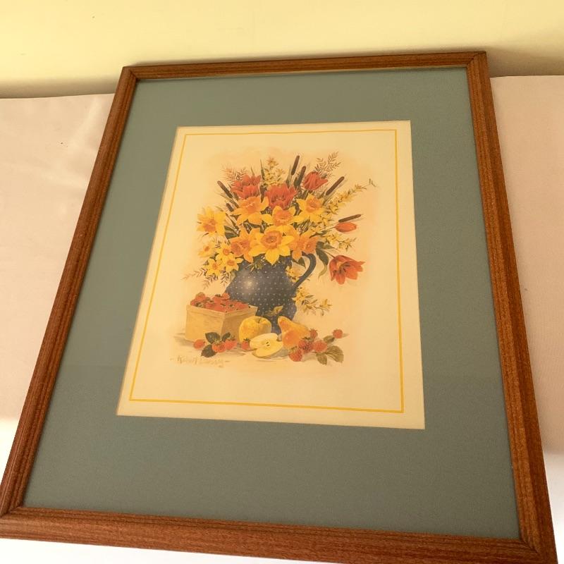 Brighten your walls in any season! This lot includes three matted pieces of art by “Irene”, “Robert Laessing” and a third by “Patti”. They all appear to be prints and sit behind glass with wooden frames. They all measure about 21.5in x 17.5in. Local pick up only.