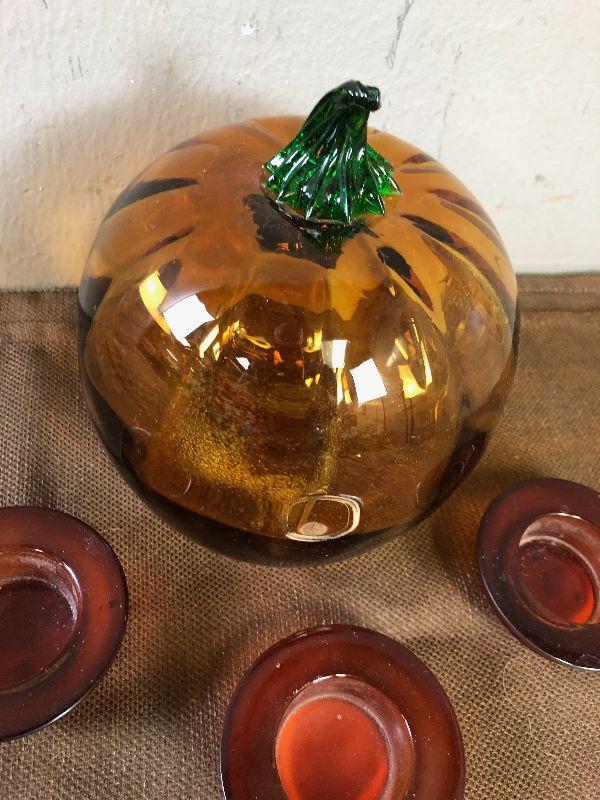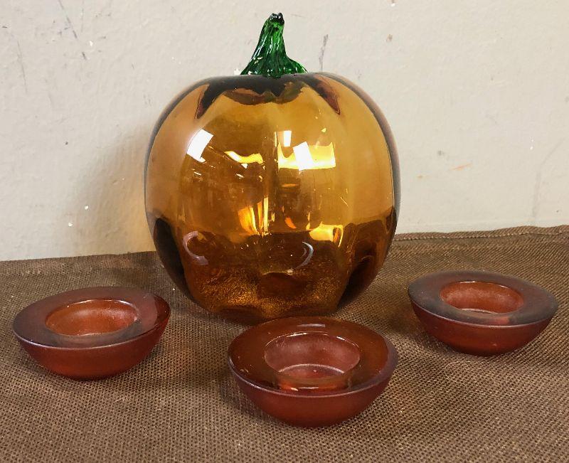Lot #206 3 votive candle holders Plus Glass Pumpkin