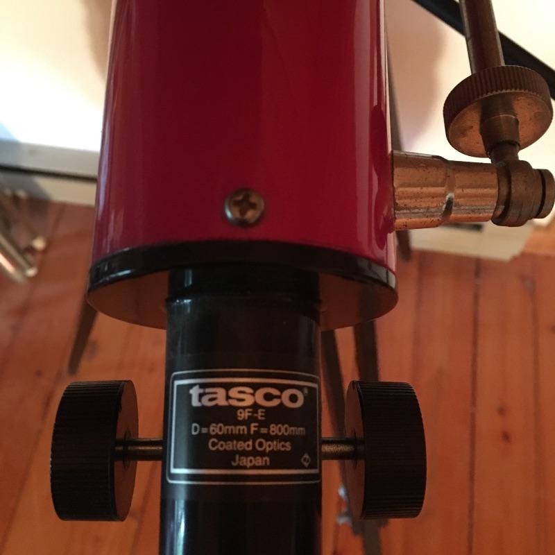 View the earth moon and the stars with this classic Tasco 9F-E telescope with folding wooden tripod. Telescope measures 36” long when extended. See images for more information.