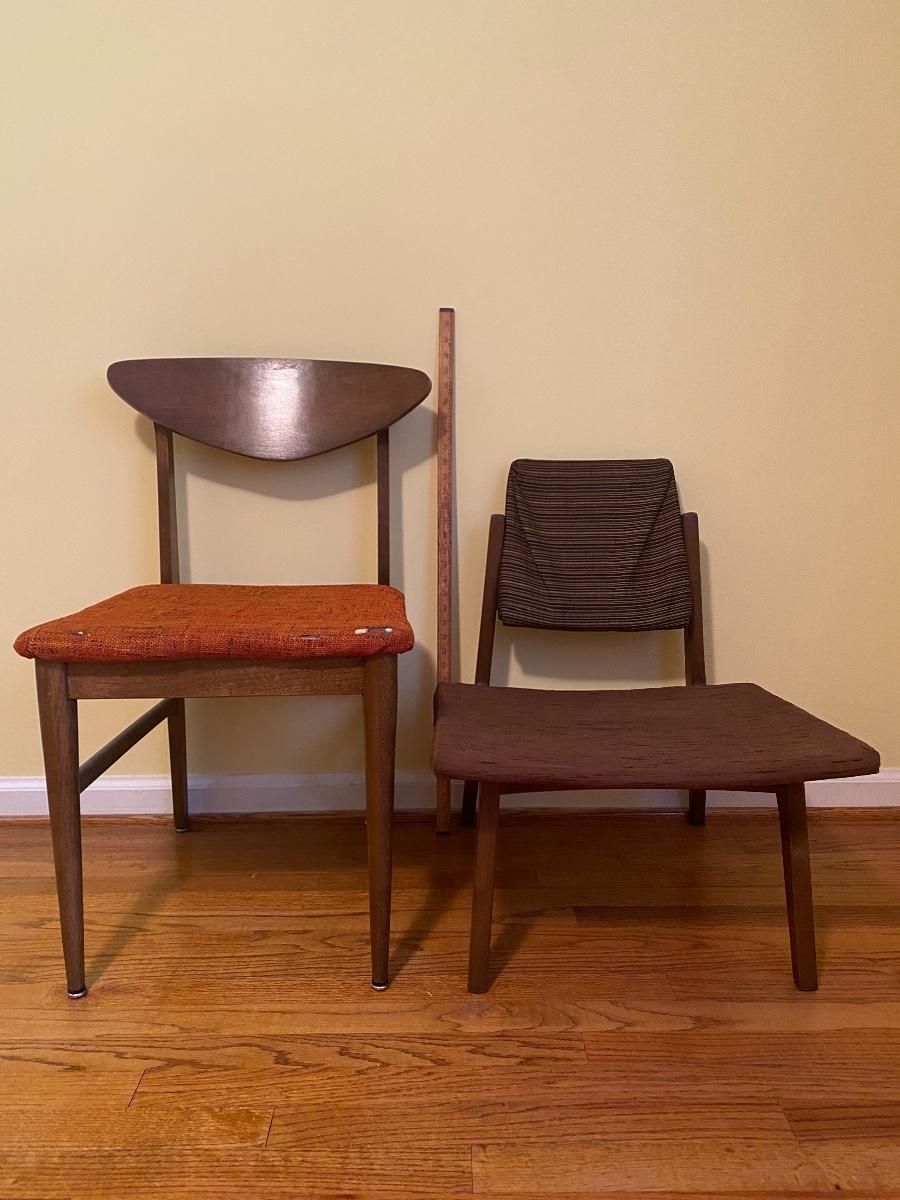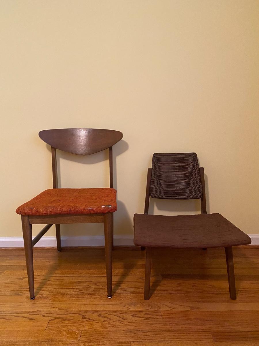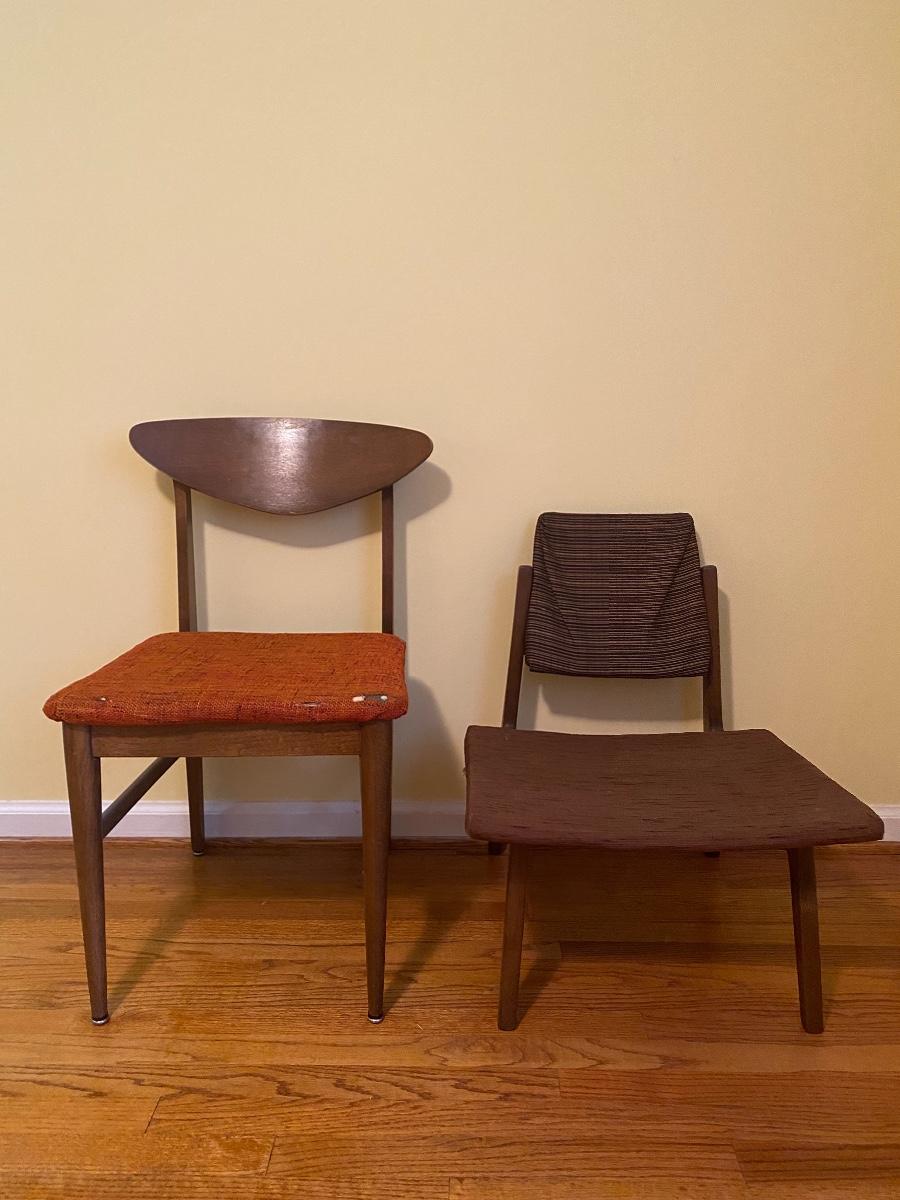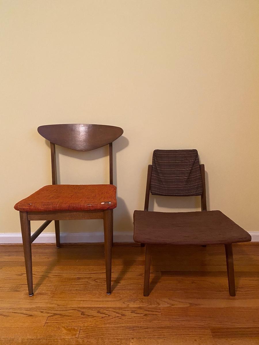 Pair of Mid Century Modern Chairs. Including a JB Van Sciver Co chair. One is regular size and the other is low to the ground. These would look amazing with new fabric! Please see all pictures as they are the best representation of the items. The pictures show condition, measurements if taken, and what is included in the lot. Due to the large amount that we photograph and the time frame, we are not always able to take measurements. All items unless noted, are pre-owned and have been used. If you purchased furniture, you must bring help. We do not allow one person to carry large furniture out on their own. Bring help, tools and a truck for the safety of our client’s homes, and your personal safety. Company policy. Thank you.