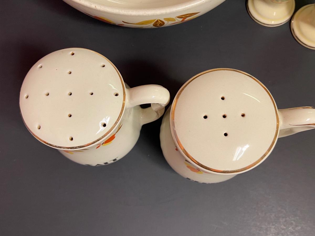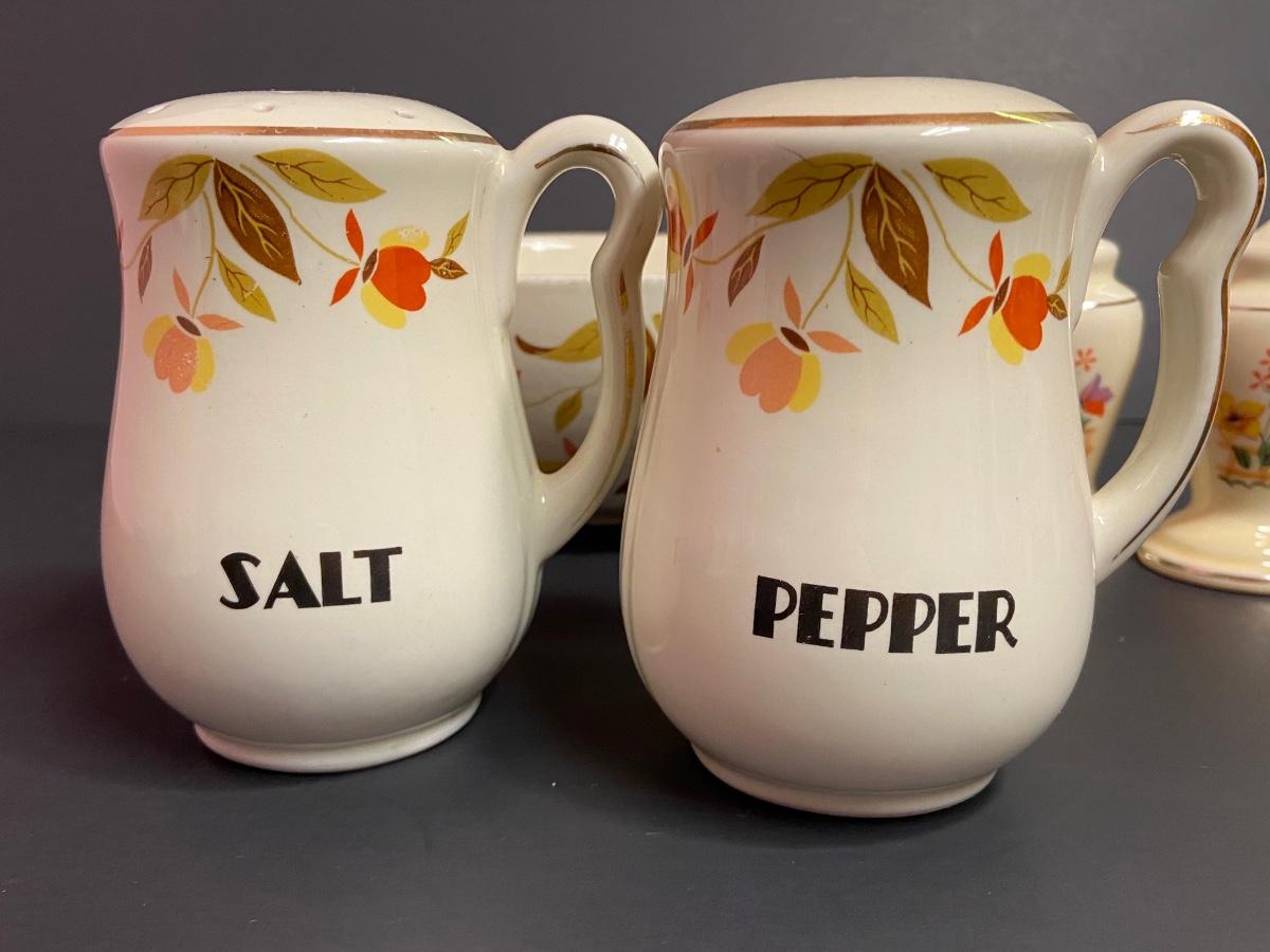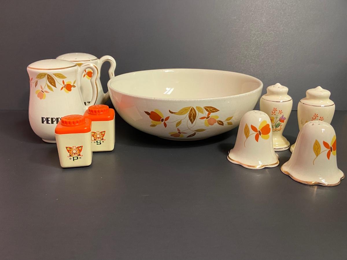 Lot 206; Vintage Hall's Autumn Leaf Bowl, Salt/Pepper Shakers and More