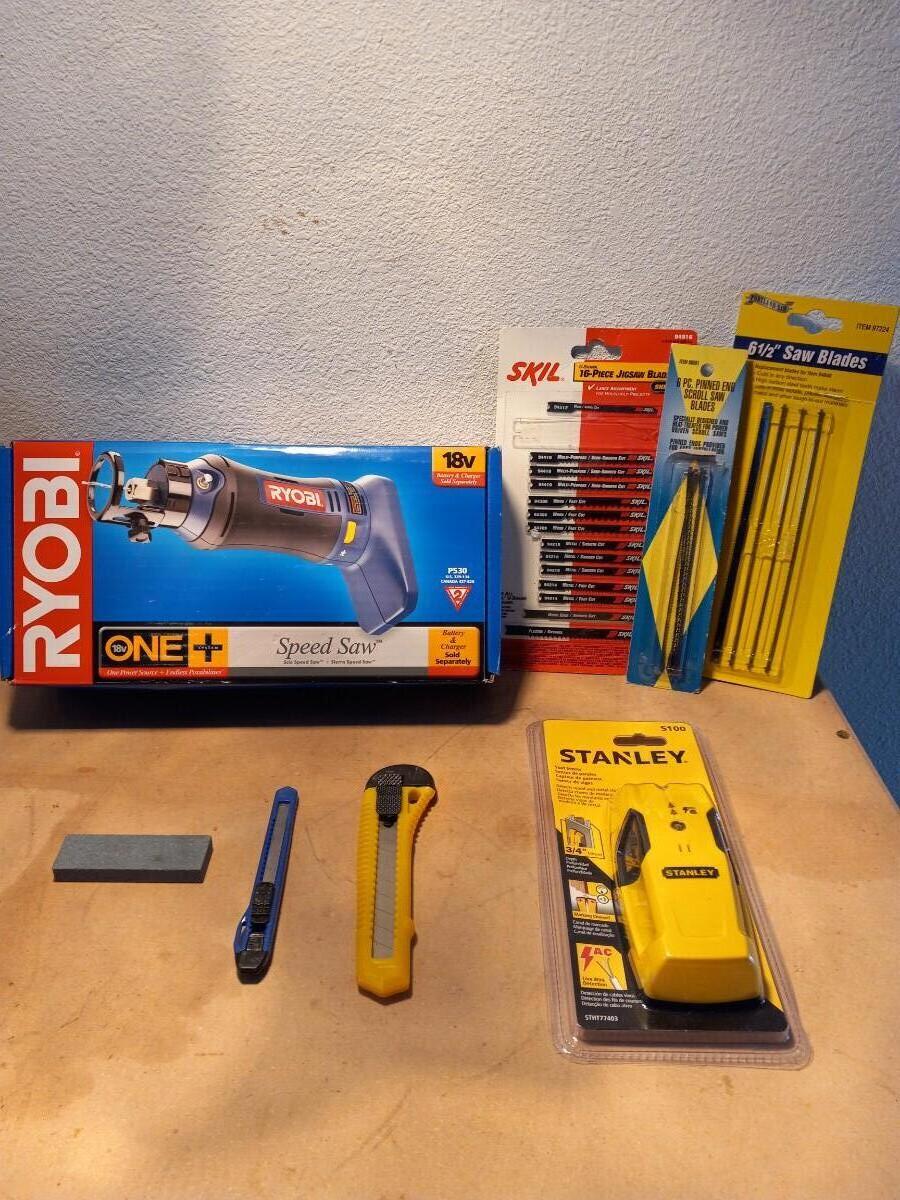 RYOBI SPEED SAW, STUD FINDER AND VARIETY OF BLADES