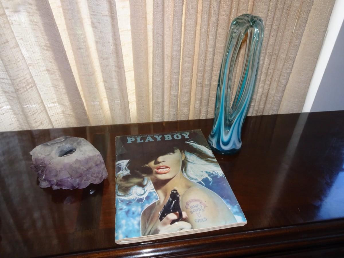 LOT 206. TWO CANDLE HOLDERS AND VINTAGE PLAYBOY MAGAZINE