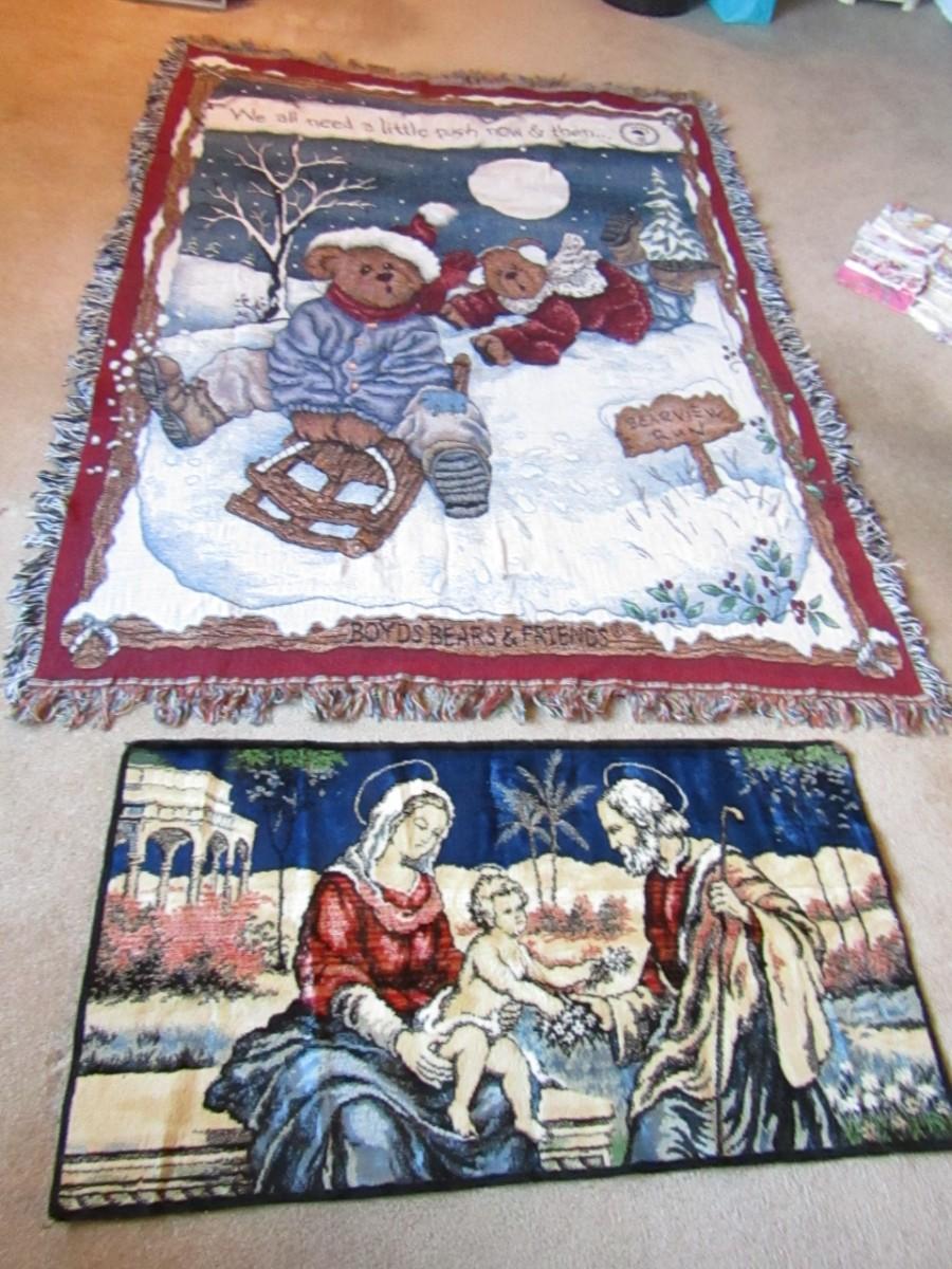 LOT 206 BOYD'S BEAR THROW BLANKET AND HOLIDAY TAPESTRY