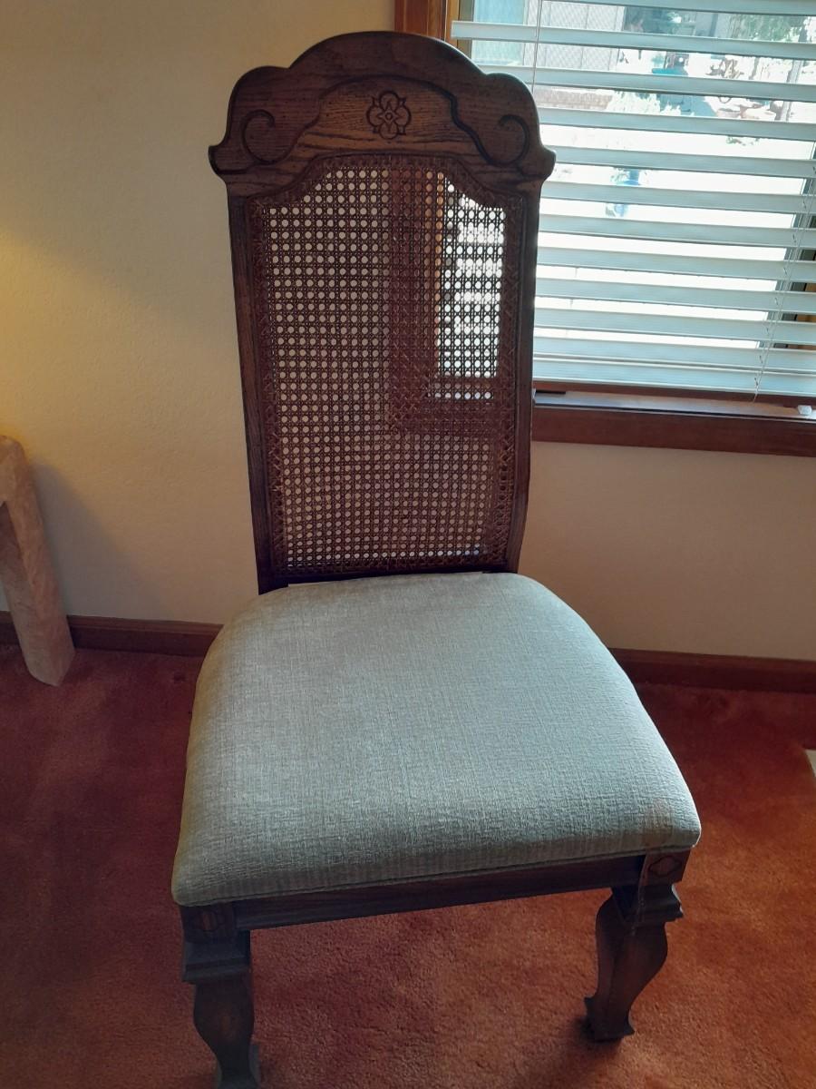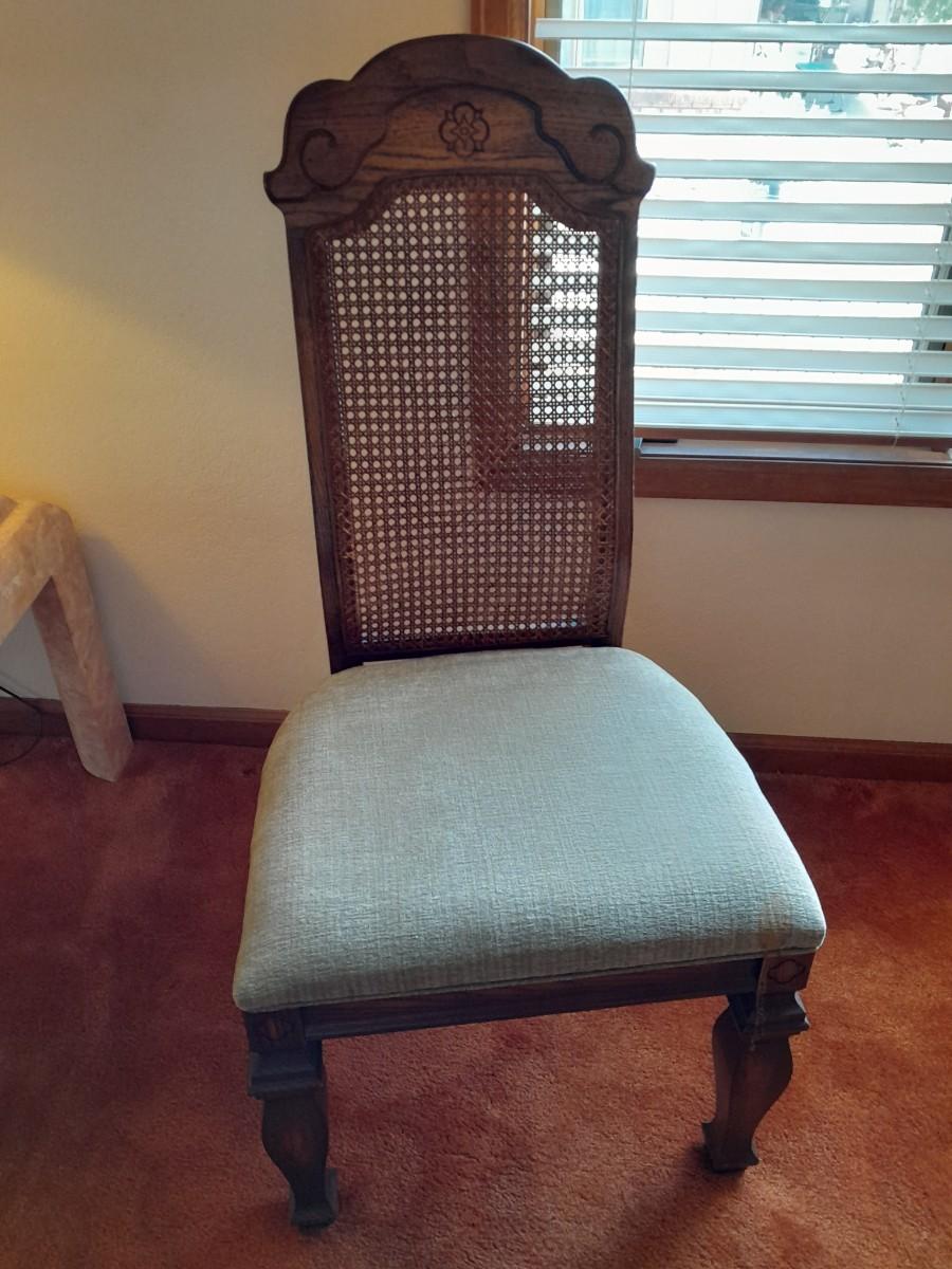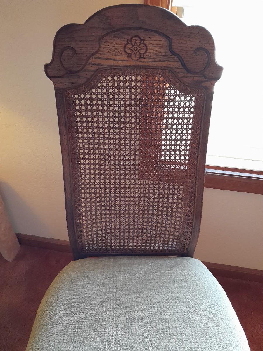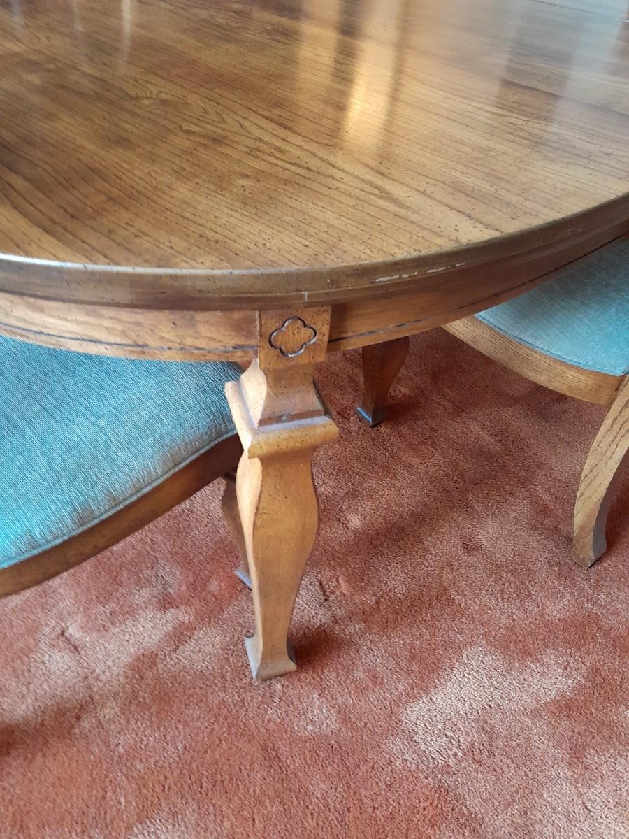 BROYHILL DINING TABLE WITH LEAF AND FOUR CHAIRS TBALE IS 78" X 42" WITH AN 18" LEAF