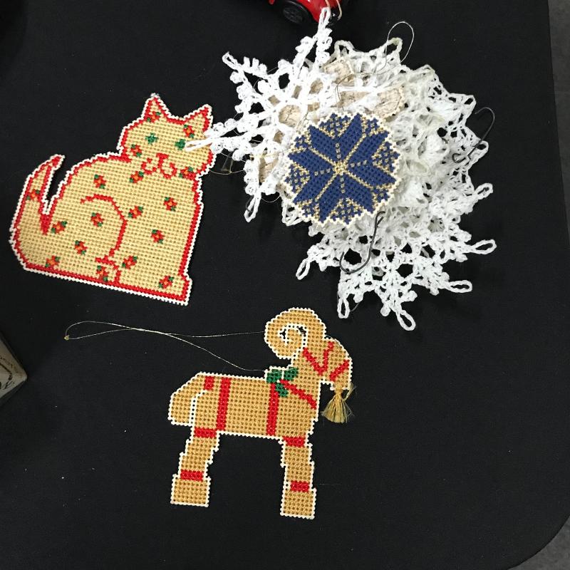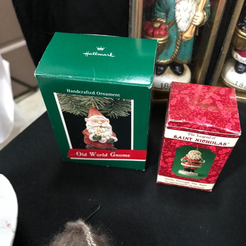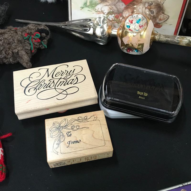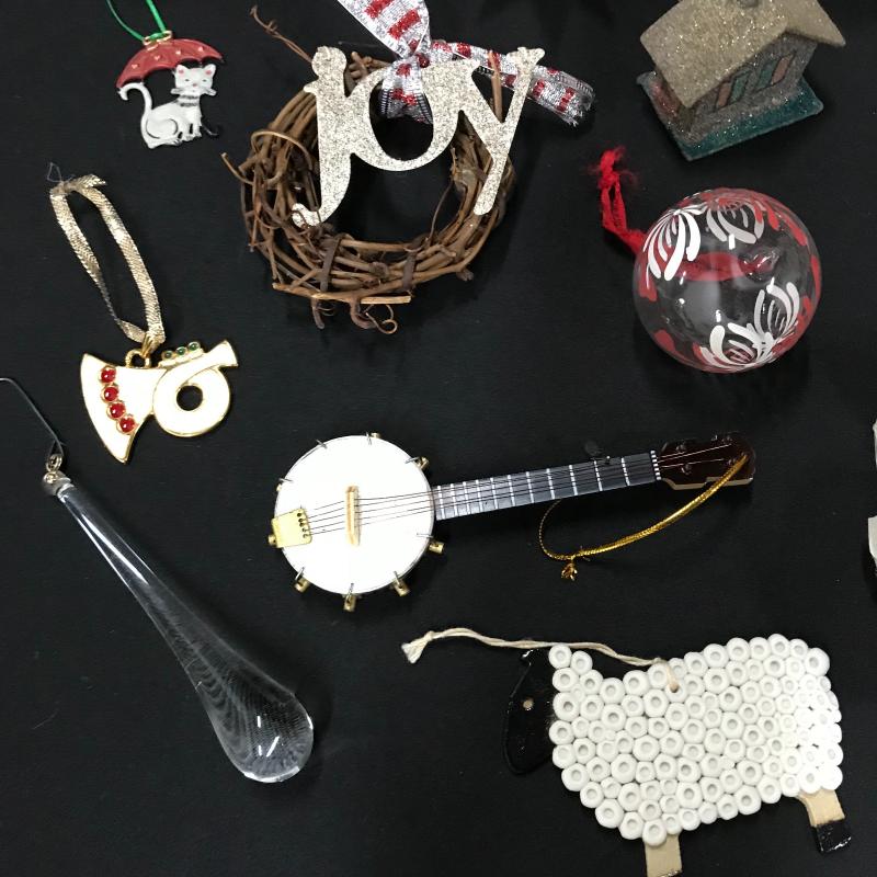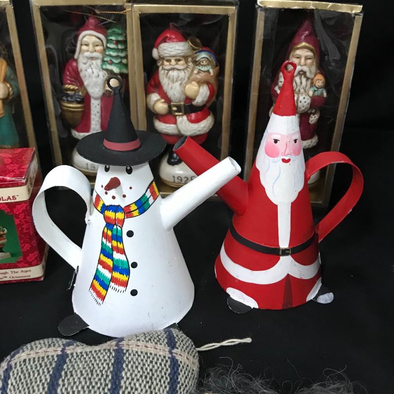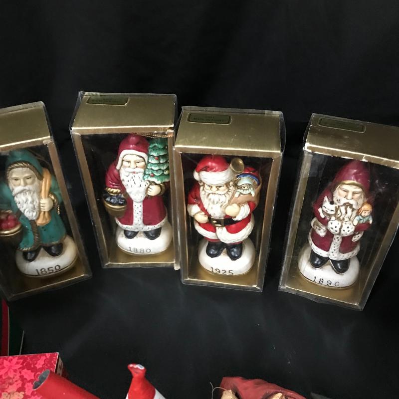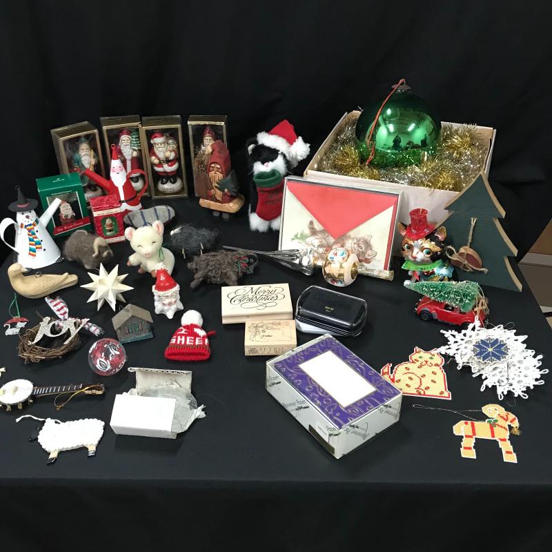 Large lot of Christmas items including vintage ornaments, reindeer candleholder, platter, gift bags, stockings, candles, lights, and two tree stands (one vintage and one heavy duty). No shipping available. Local pickup only in Asheville, NC.