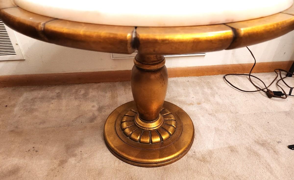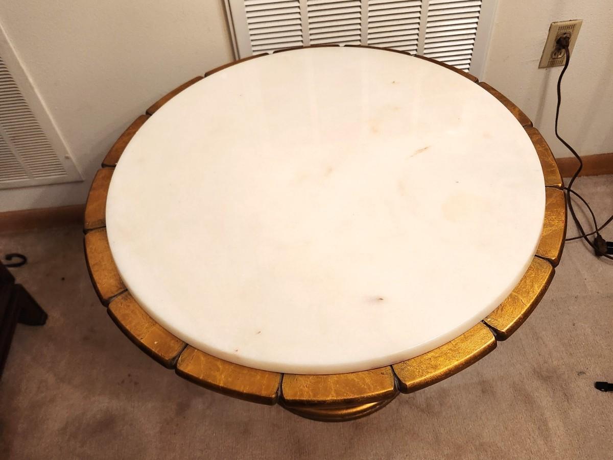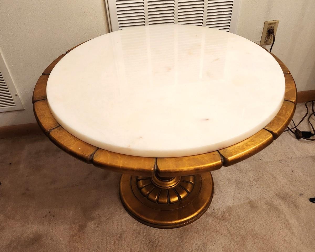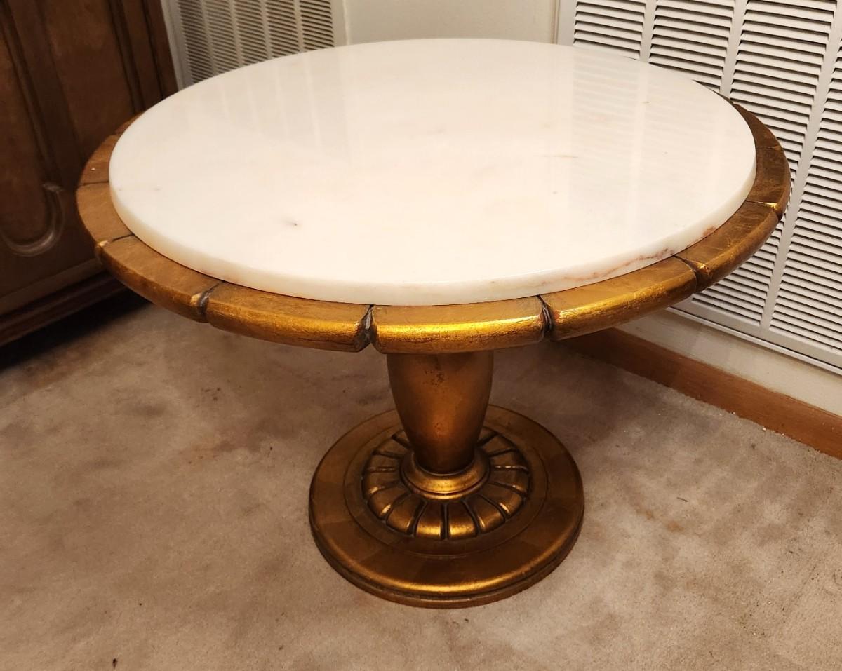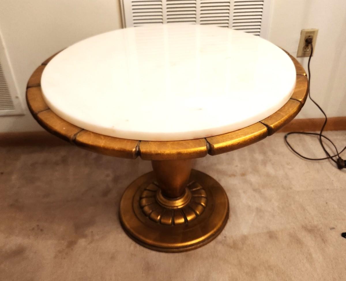 Pretty Contemporary Center/Coffee/Lamp Table - very versatile - with marble top (will lift off) Good condition. 30" across, 23" tall.