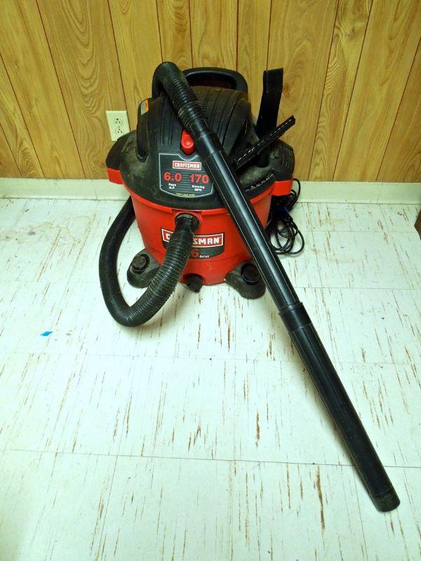 wet dry vac with 6.0 HD and 170 mph blower. Has attachments. Dusty and filter needs cleaning.