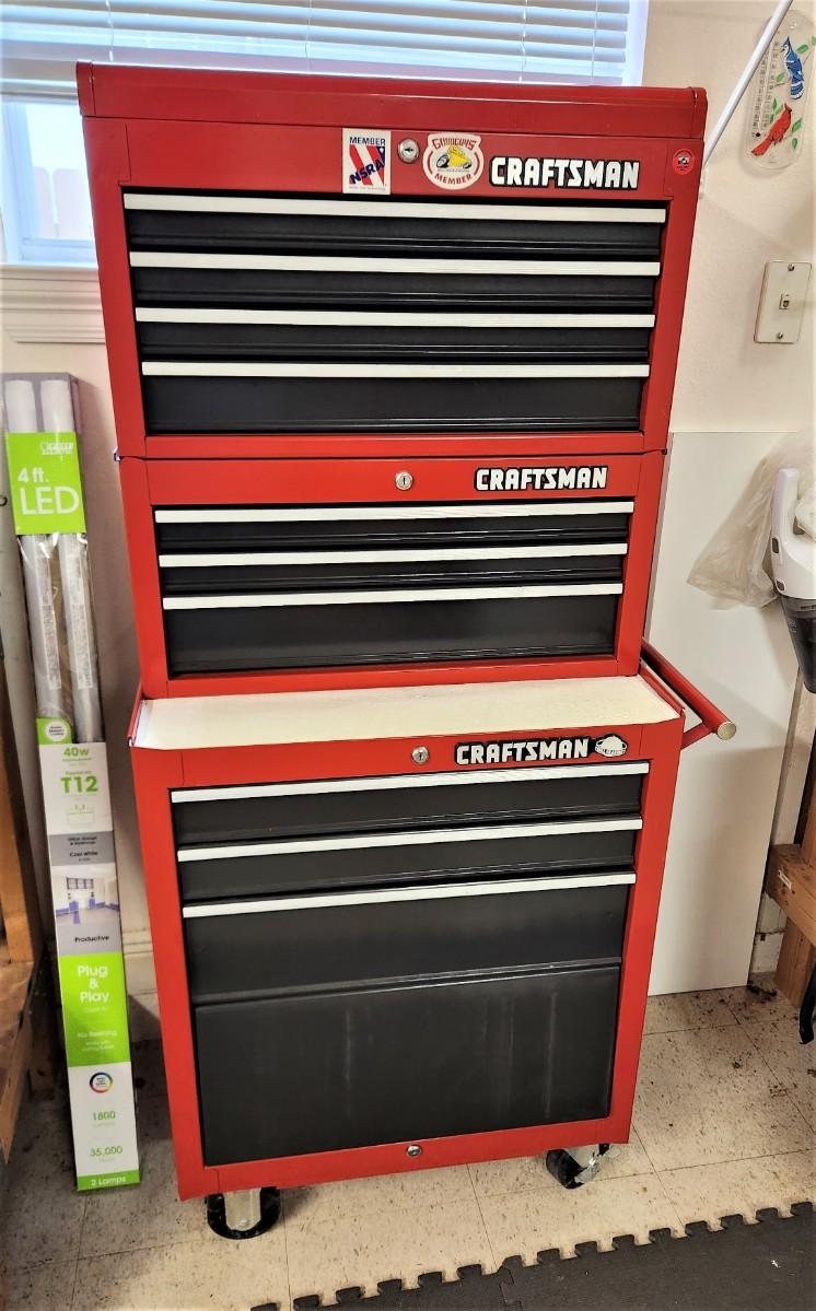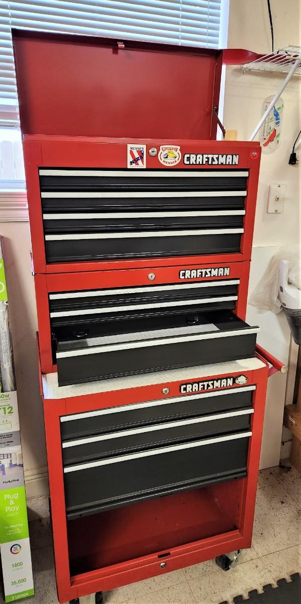 It's a beauty! Craftsman 3 piece standing tool box cabinet with keys - 61" tall, 26.5" across - on wheels.
