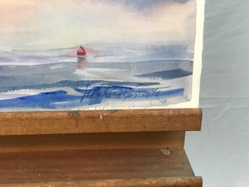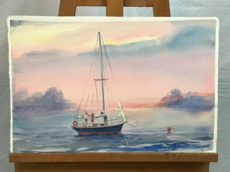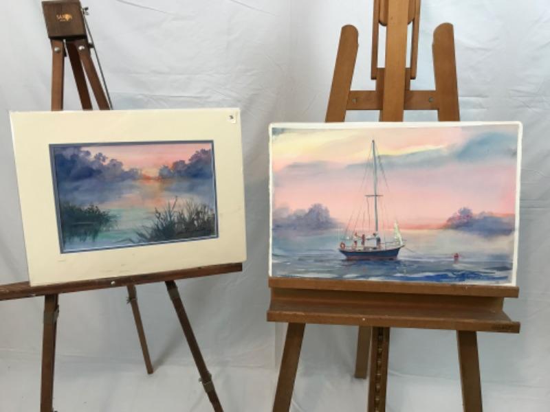Pair of Jean Ranney Smith signed original watercolor paintings “Evening Sail” measures 22”x15” and “Sunset on the River” measures 18”x14” including mat