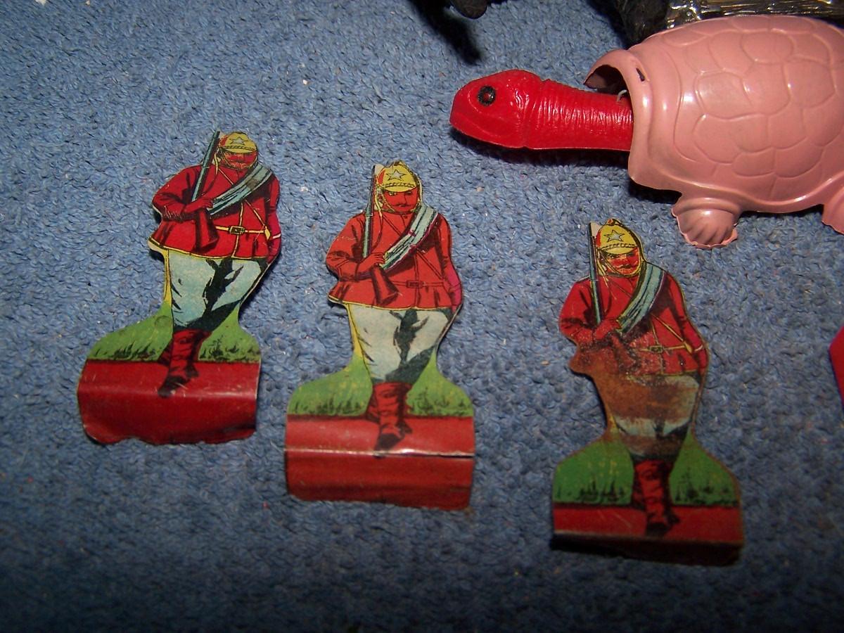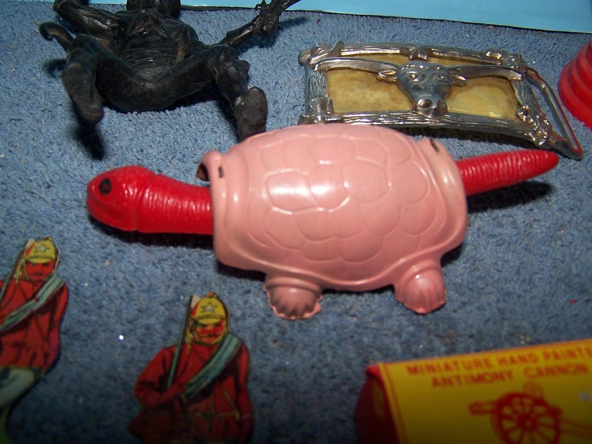 THESE ARE GREAT VINTAGE TOY THINGS! SNOW GLOBE'S WATER IS MOSTLY GONE.. BLACK FIGURE IS ZORO MARKED DISNEY PRODUCTIONS. ALL TOYS HAVE BEEN PLAYED WITH..