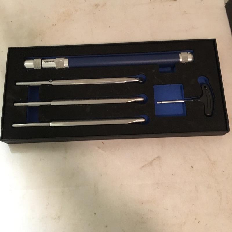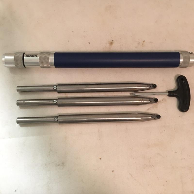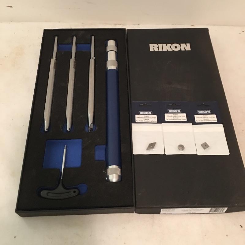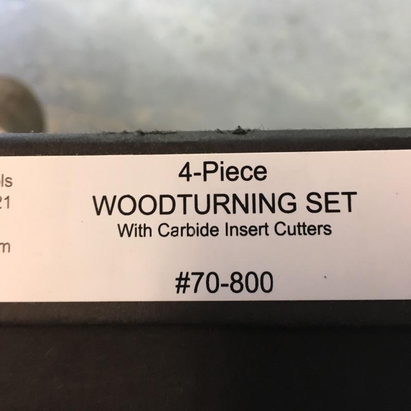Rikon four piece wood turning set with carbide insert cutters. Model # 70 - 800. Handle with end inserted measures 25.5”.