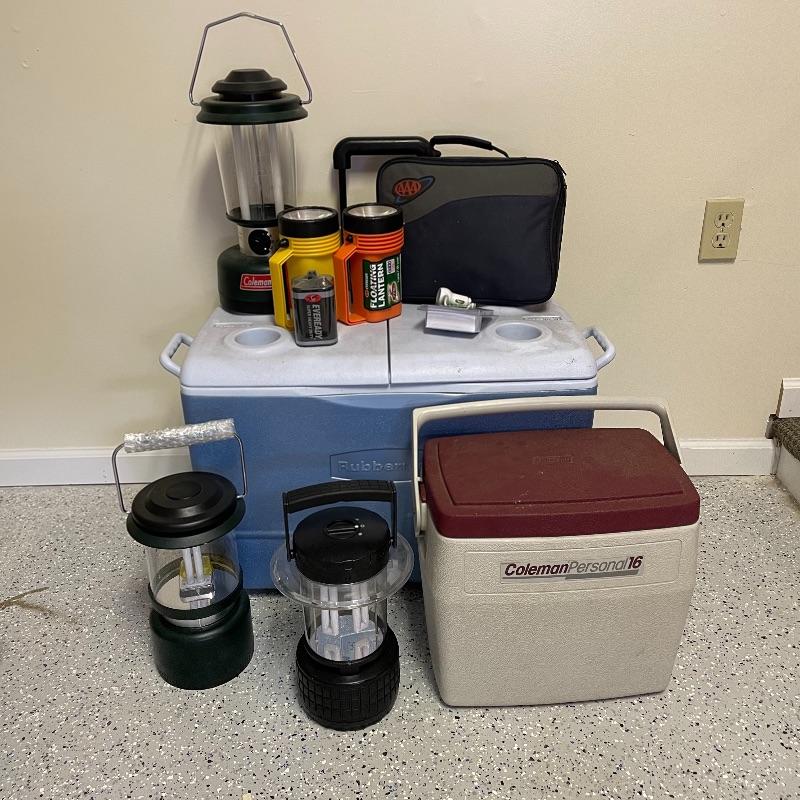Lot 206 - Coolers, Lanterns, and Emergency Car Kit!