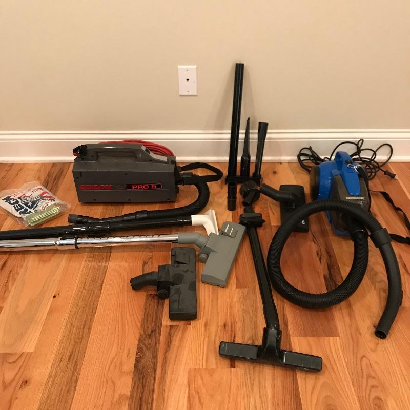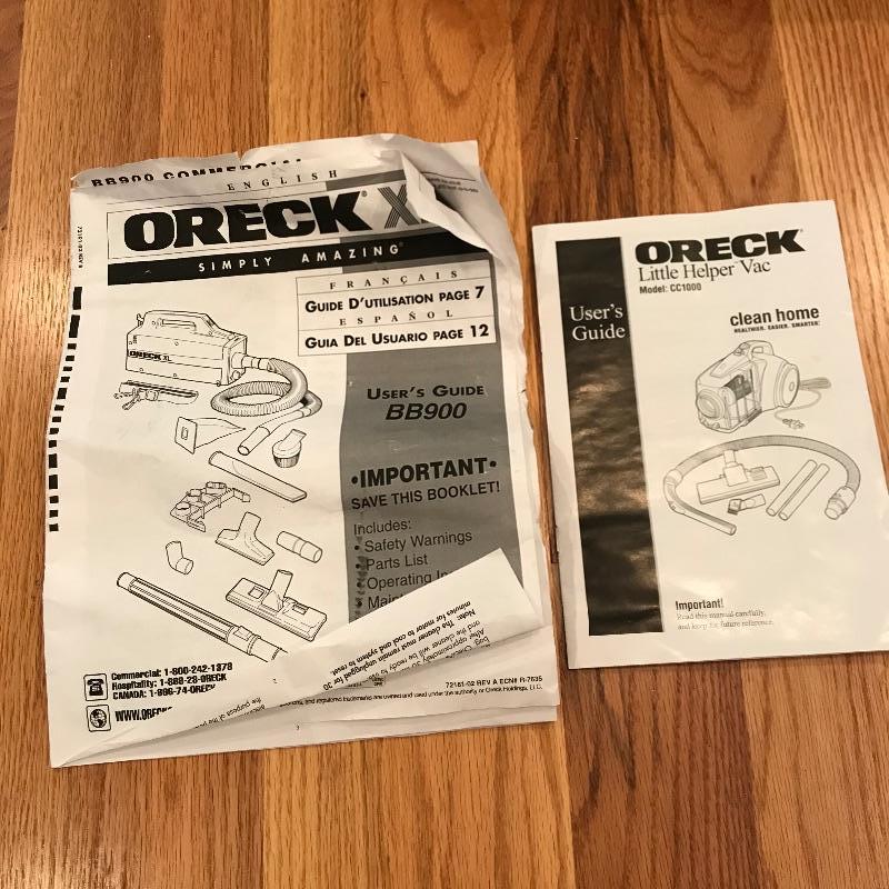 Two lightweight Oreck vacuums for your household or office needs. Both come equipped with shoulder straps and many accessories. Seven filters for the XL model included. Both work when turned on. These vacuums come from an estate with cats. Both vacuums were tested for a very short amount of time, no pet odors were noticed when turned on. See photos. No shipping.