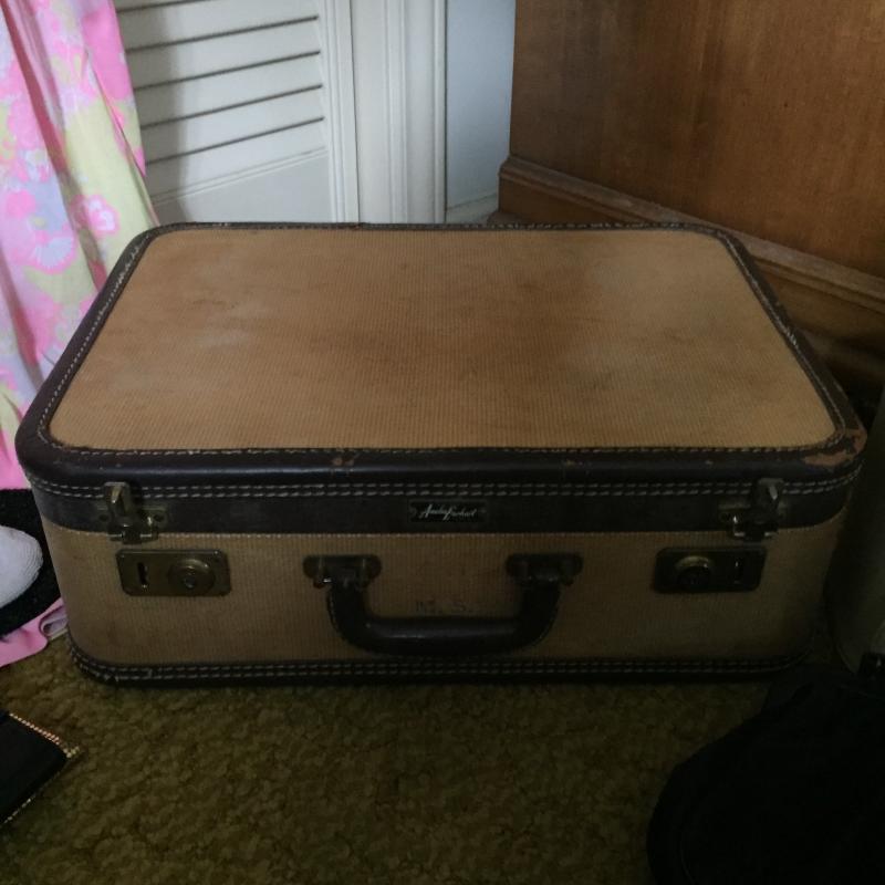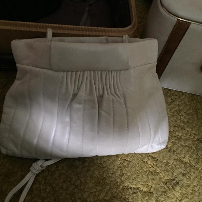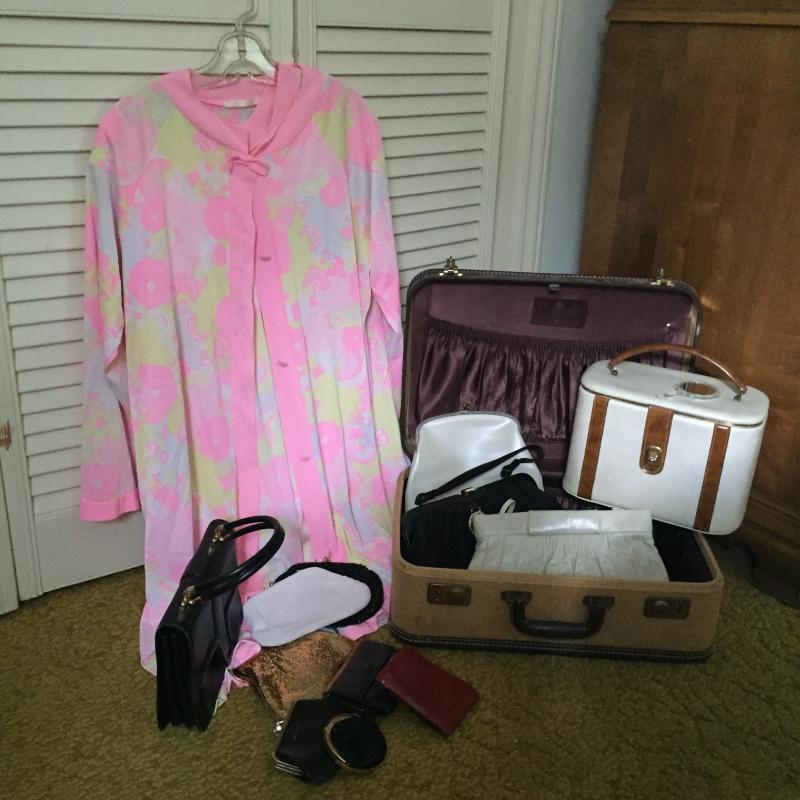 Beautiful Lot of Vintage Bags,Amelia Earhart Suitcase Assortment of Leather Bags and Clutche, Sleeper set has Name written on lapel by Hand