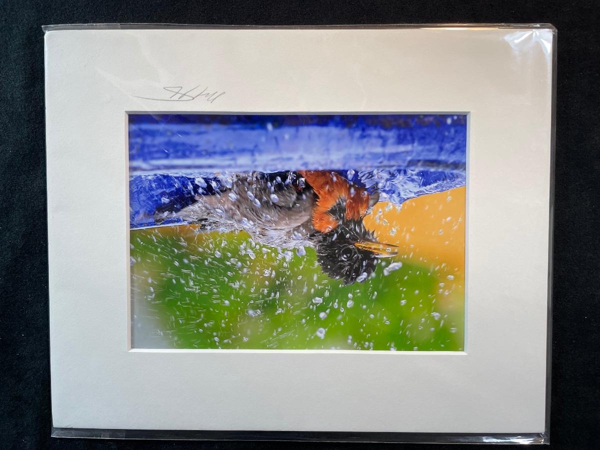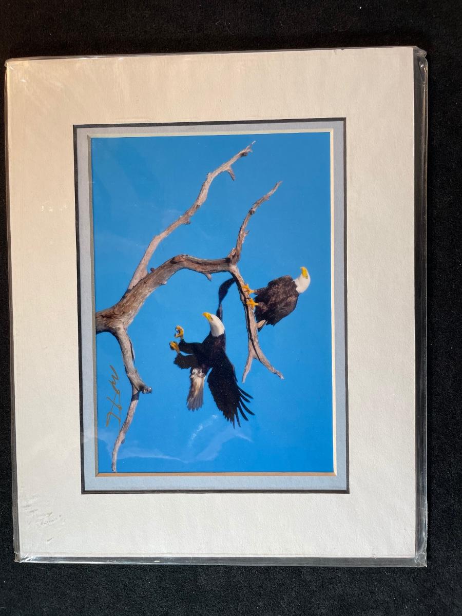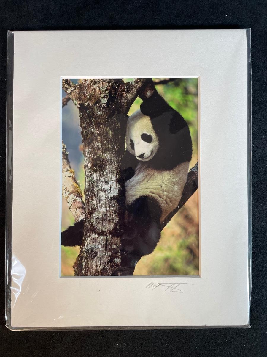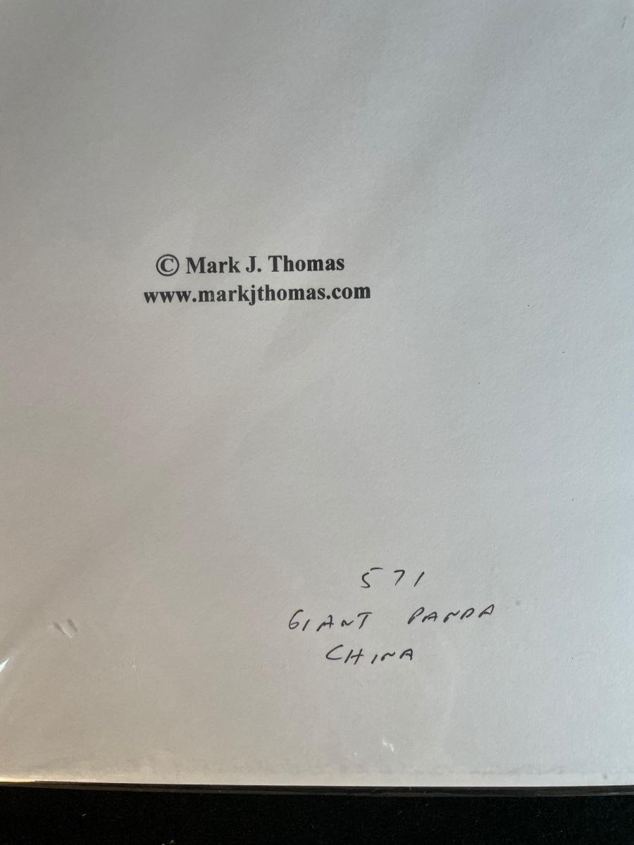 Pottery Raccoon, wooden sloth figurine (repaired), 2022 wildlife calendar, 3 framed photos of wildlife by Mark J. Thomas