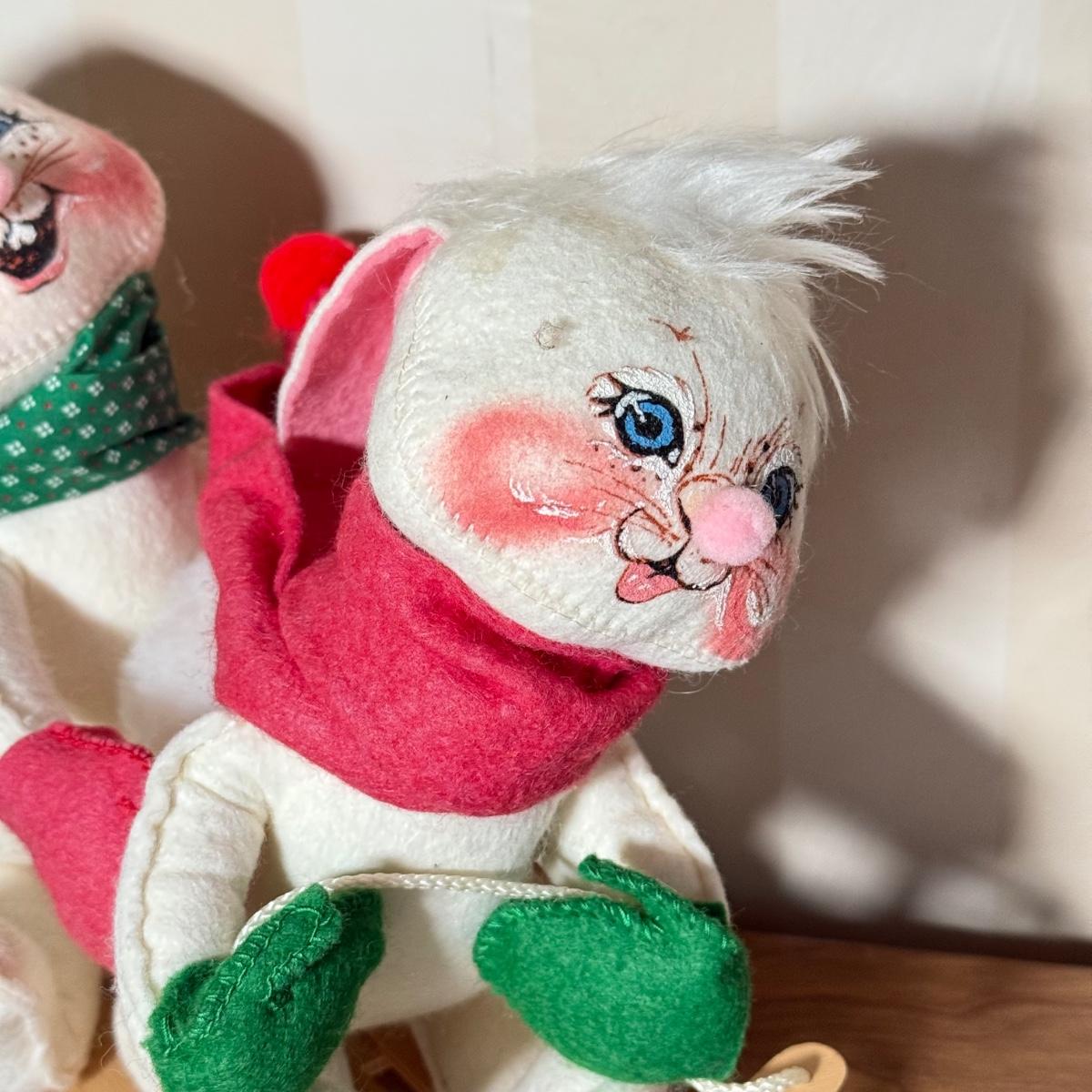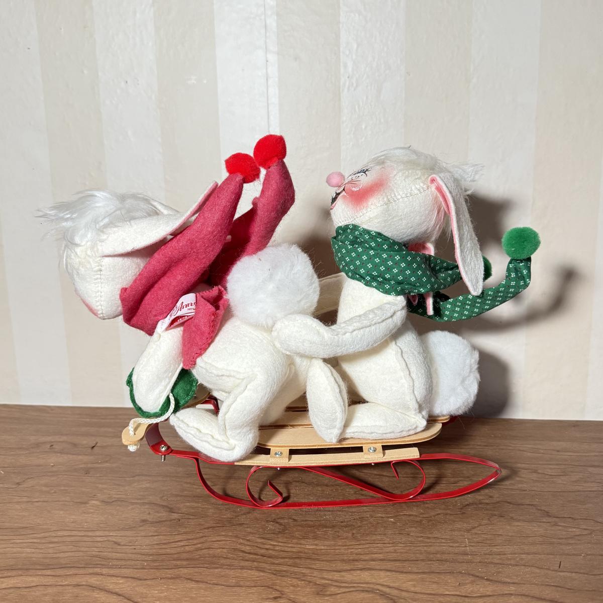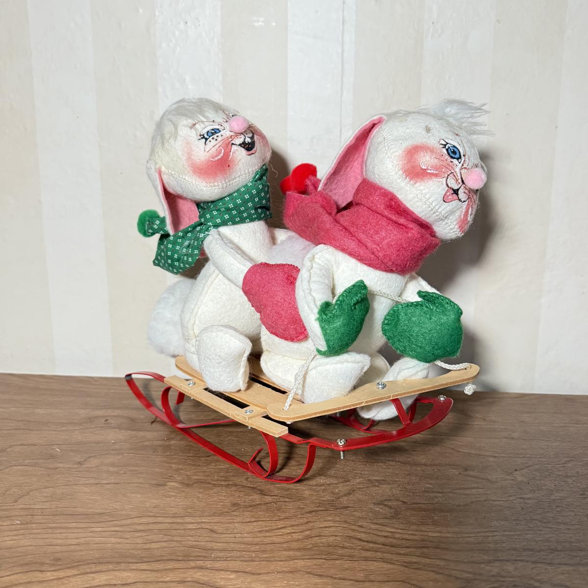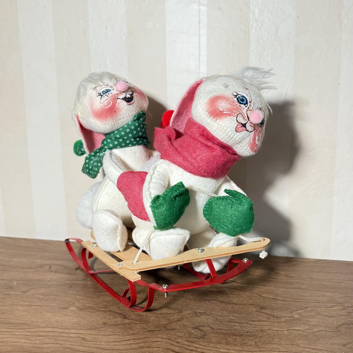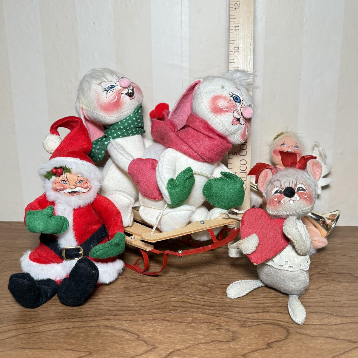 LOT 206L: Vintage Analee Dolls: Bunnies on Sled, Angel, Santa & Valentines Mouse