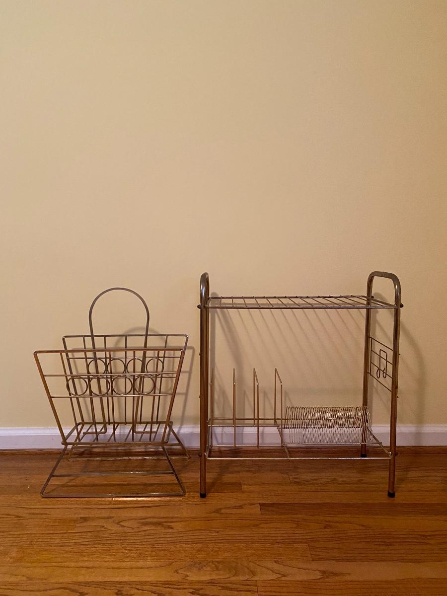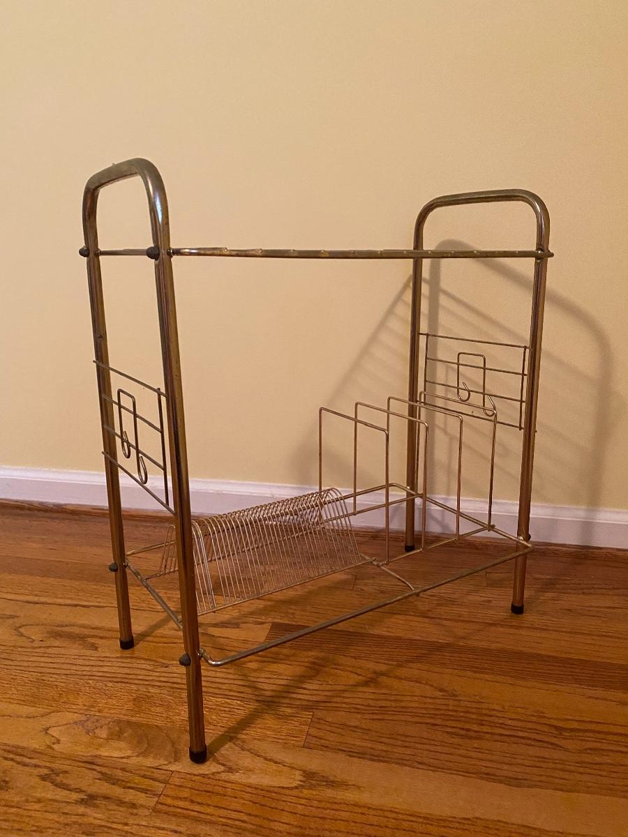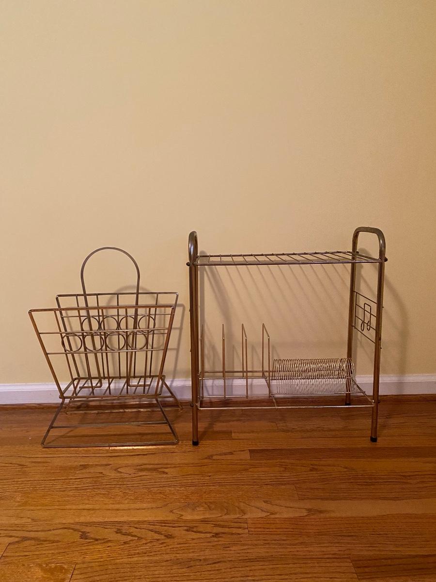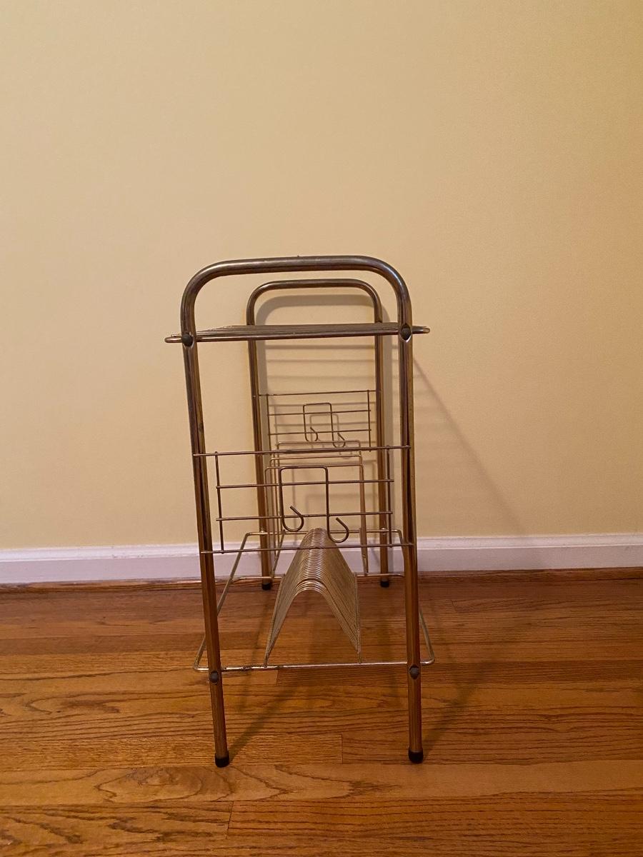 Two great mid century pieces. They both show a little wear. The record stand is lightweight and the magazine is a heavier metal, solid. Please see all pictures as they are the best representation of the items. The pictures show condition, measurements if taken, and what is included in the lot. Due to the large amount that we photograph and the time frame, we are not always able to take measurements. All items unless noted, are pre-owned and have been used. If you purchased furniture, you must bring help. We do not allow one person to carry large furniture out on their own. Bring help, tools and a truck for the safety of our client’s homes, and your personal safety. Company policy. Thank you.