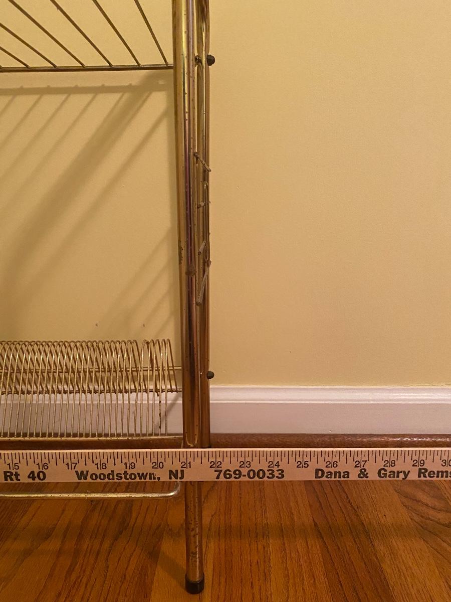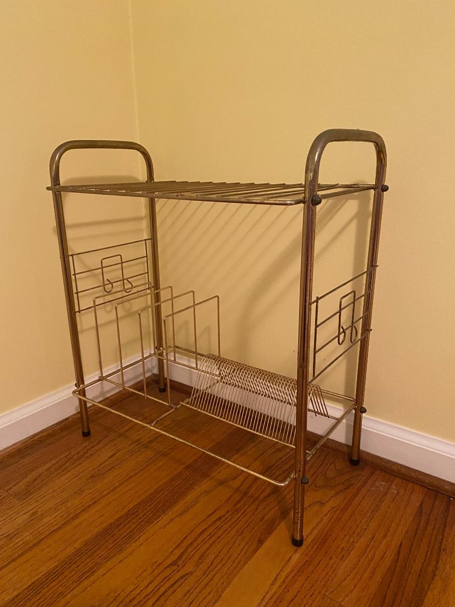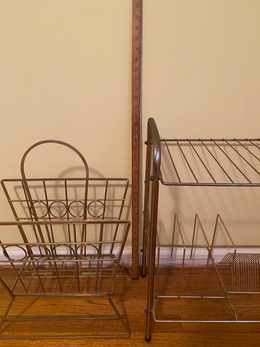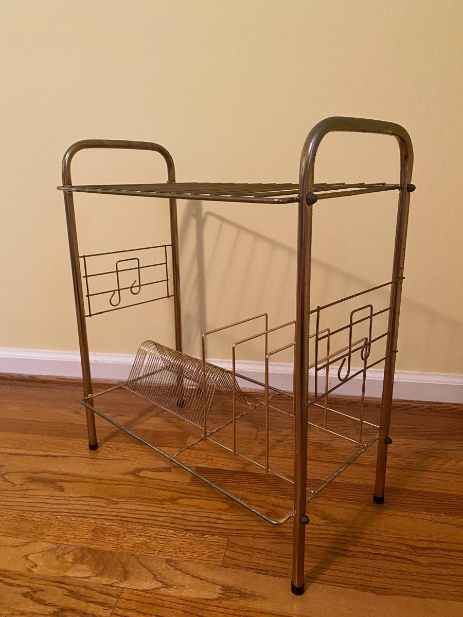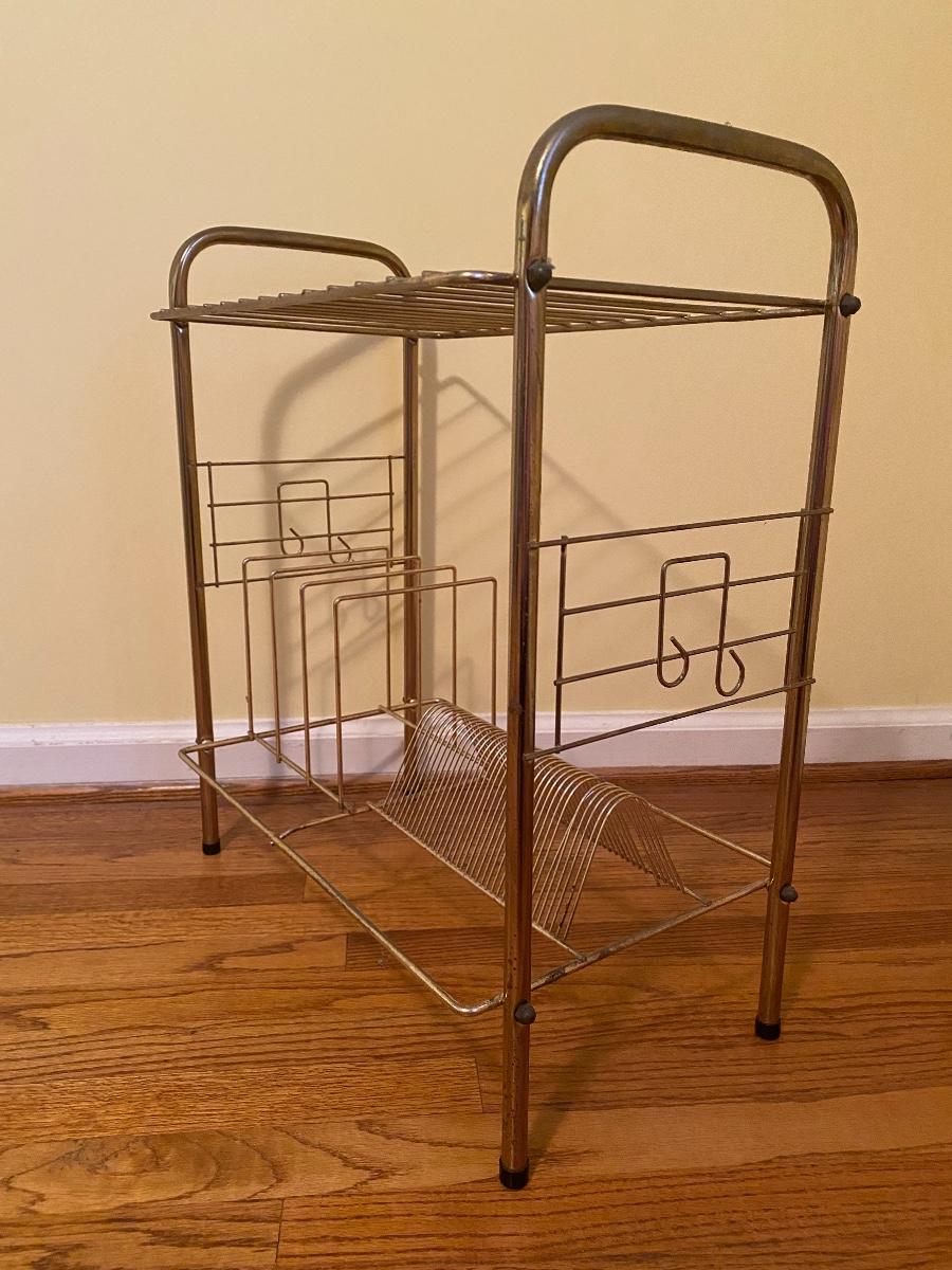 Two great mid century pieces. They both show a little wear. The record stand is lightweight and the magazine is a heavier metal, solid. Please see all pictures as they are the best representation of the items. The pictures show condition, measurements if taken, and what is included in the lot. Due to the large amount that we photograph and the time frame, we are not always able to take measurements. All items unless noted, are pre-owned and have been used. If you purchased furniture, you must bring help. We do not allow one person to carry large furniture out on their own. Bring help, tools and a truck for the safety of our client’s homes, and your personal safety. Company policy. Thank you.