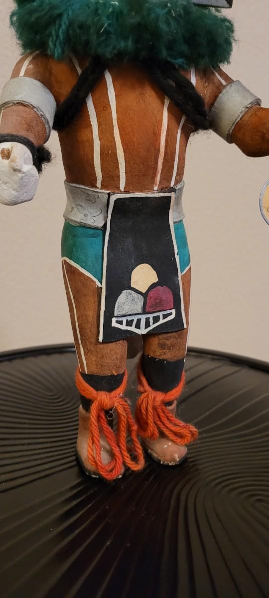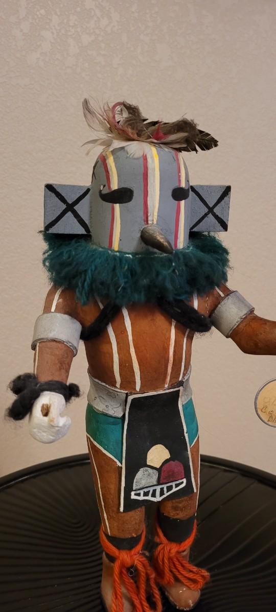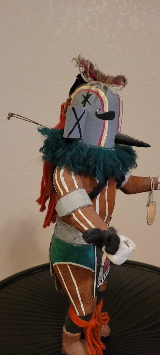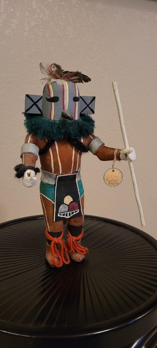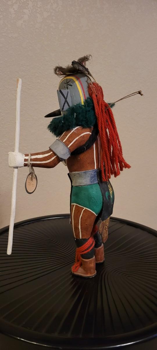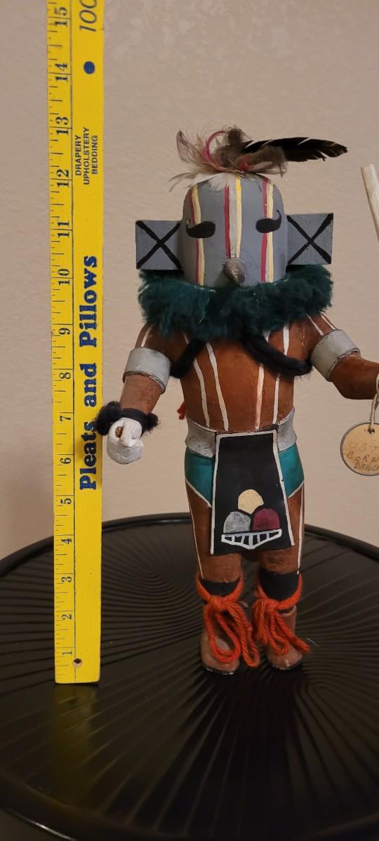 This lot features a handmade Native American Kachina Doll.that has been handpainted to reflect a Corn Dancer.
