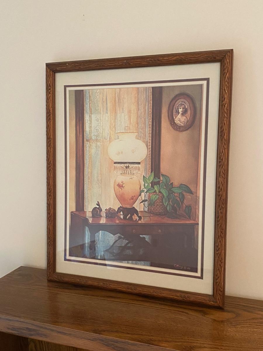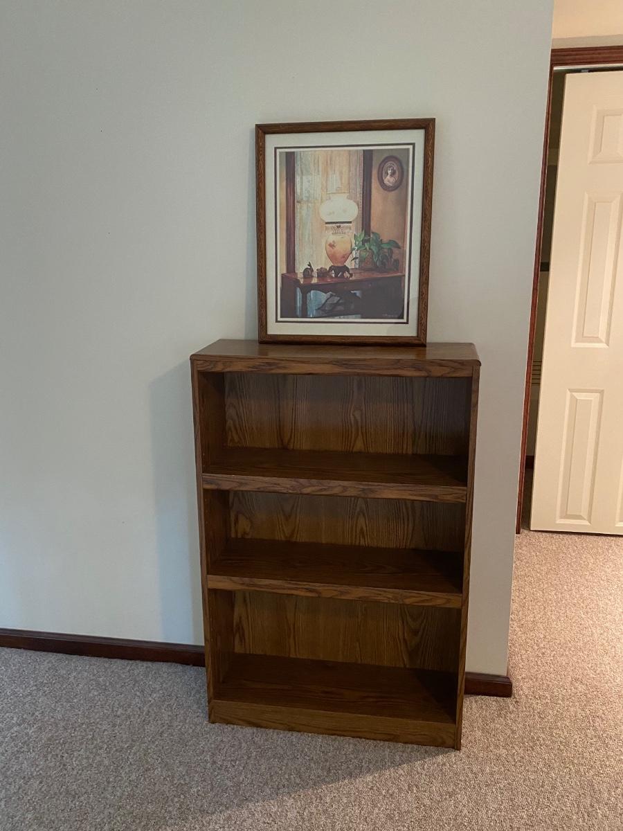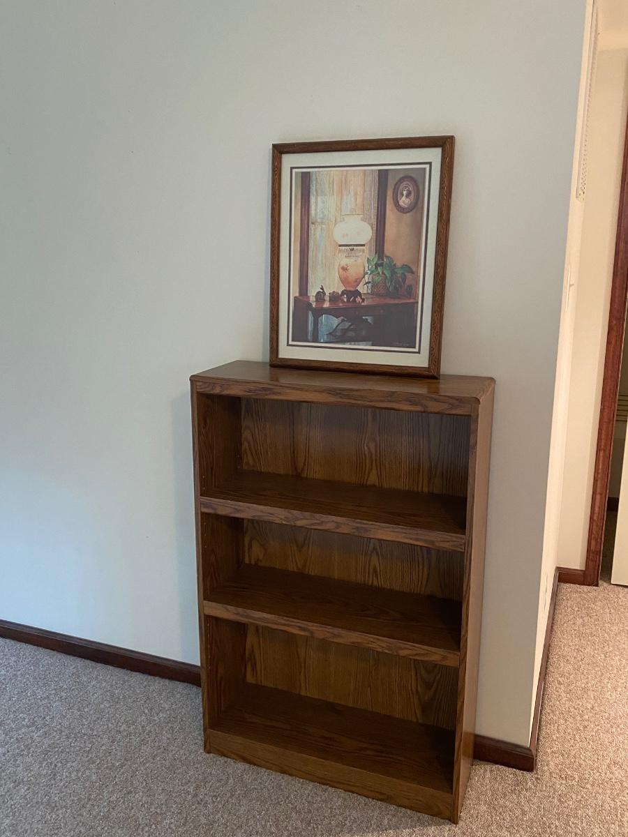 Lot 207: Small Book Shelf with a Signed & Dated Print