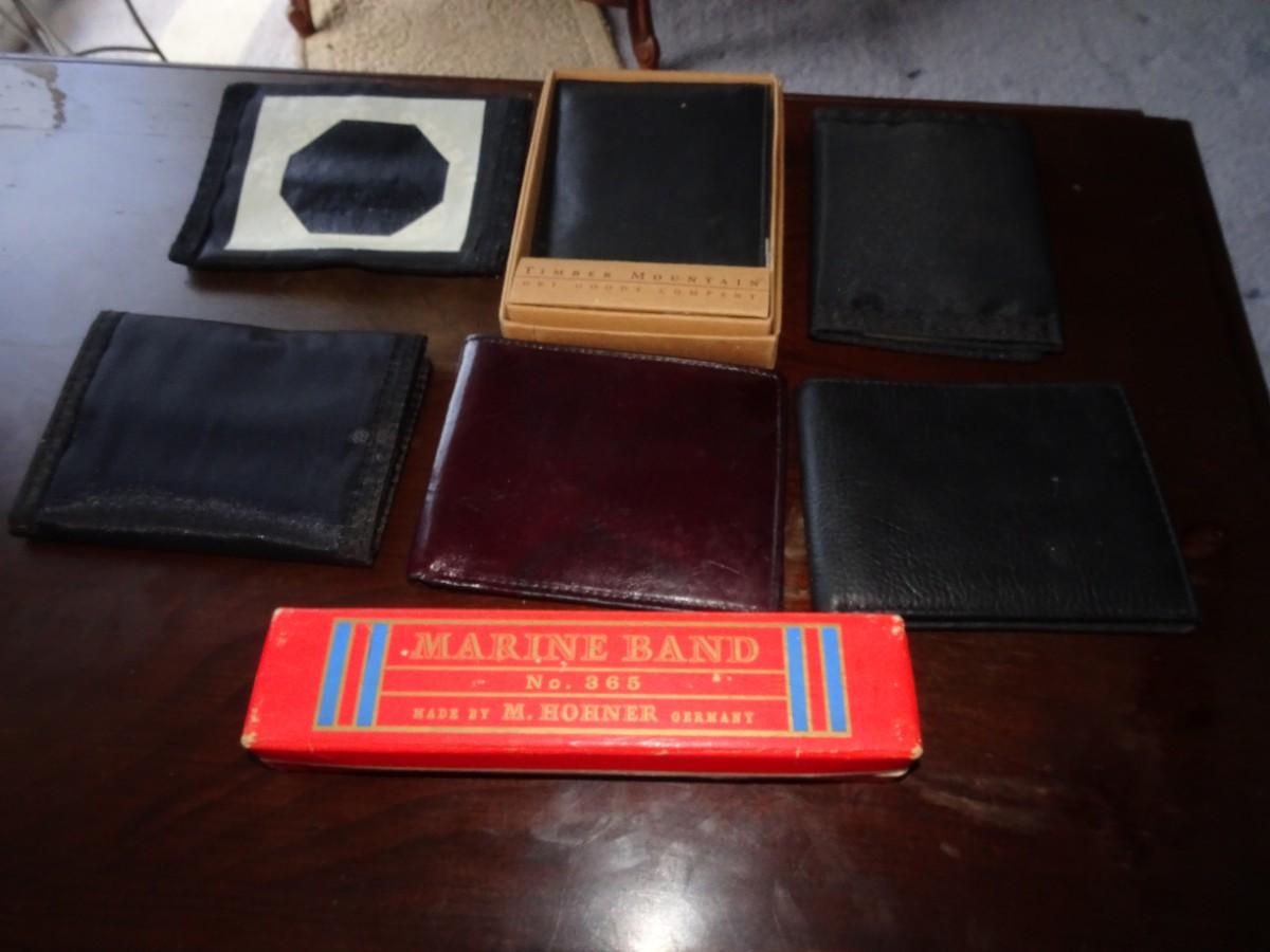 LOT 207. MARINE BAND HORNER  HARMONICA AND SIX USED WALLETS