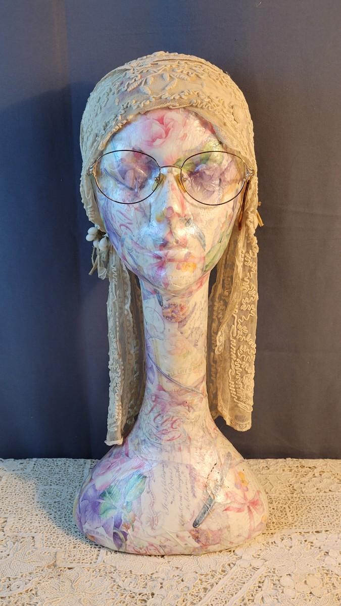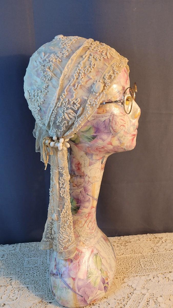 Lot 207: Decorative Styrofoam Head with Antique Head Scarf and Glasses
