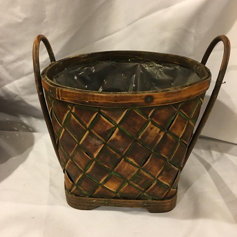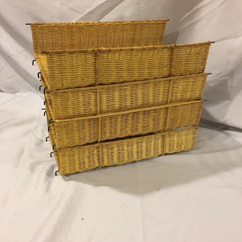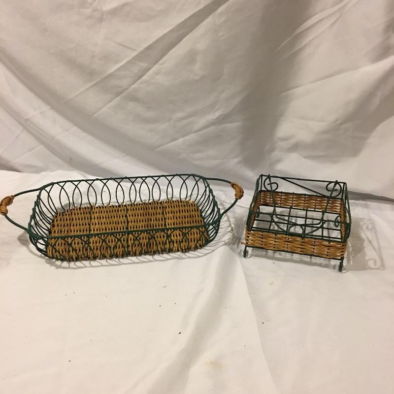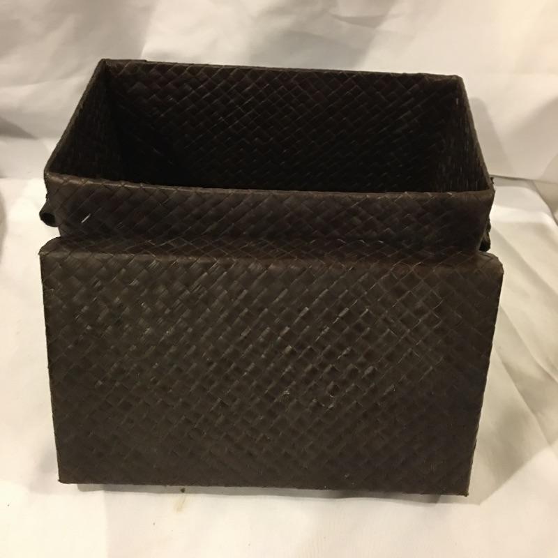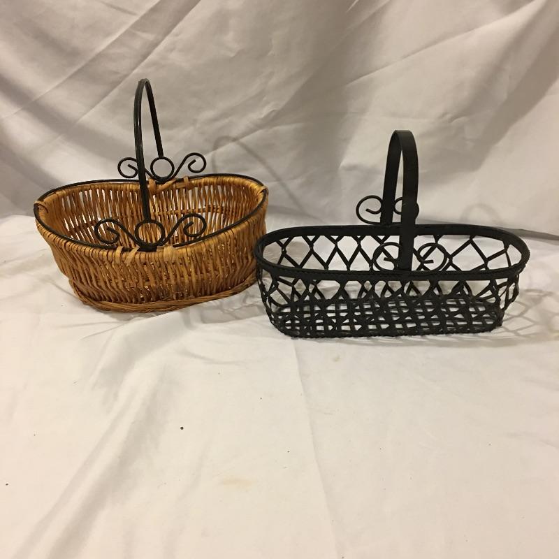This is a great array of baskets in a variety of sizes, styles, shapes and materials. Lot includes trash can , metal baskets, wicker box with lid, basket with beads, canvas basket, metal and wicker baskets and more. Largest rectangular lidded basket measures 29” x 6” x 6.5”.