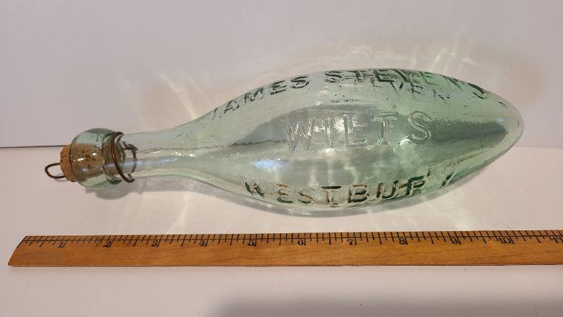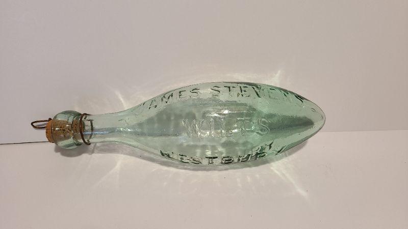 James Stevens Wilts Westbury Green Bottle. Unique and hard to find. Each lot is unique and you will need to see all pictures. Pictures have been taken from all side to see condition and markings. What you see in the pictures is the actual content of the lot and the pictures are the best representation of the bottles. All bottles are sold-is according to the pictures. For further information please google the makers marks for age.