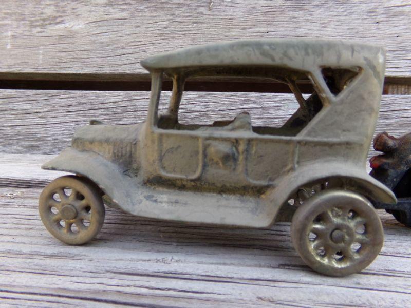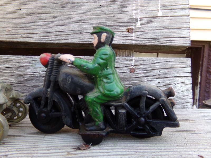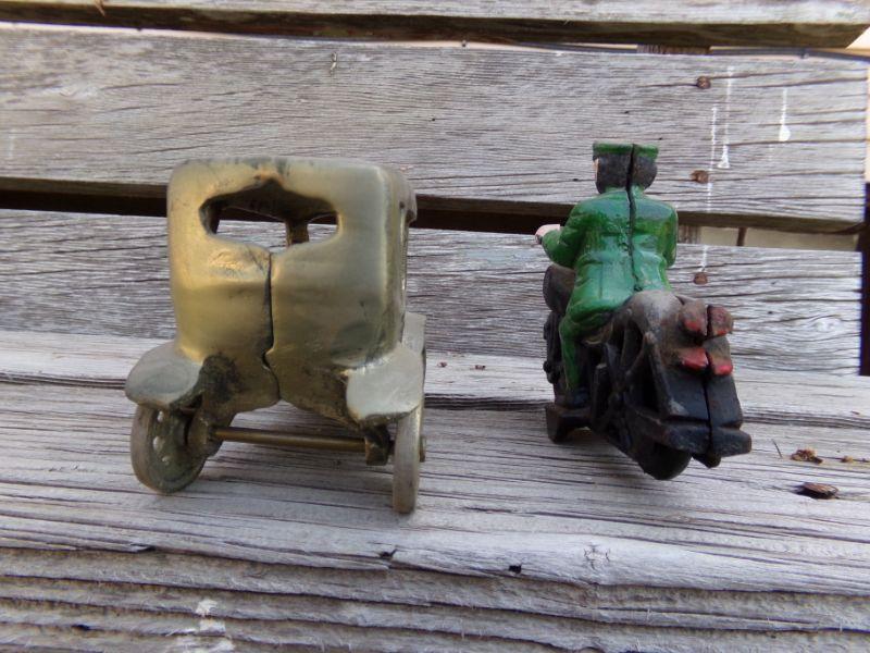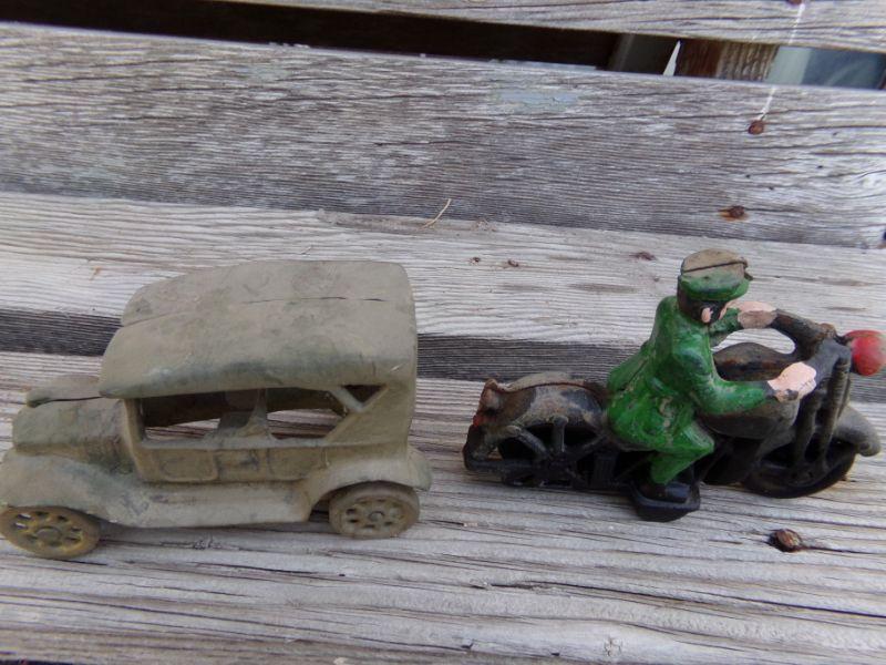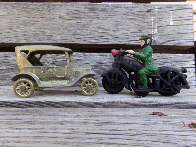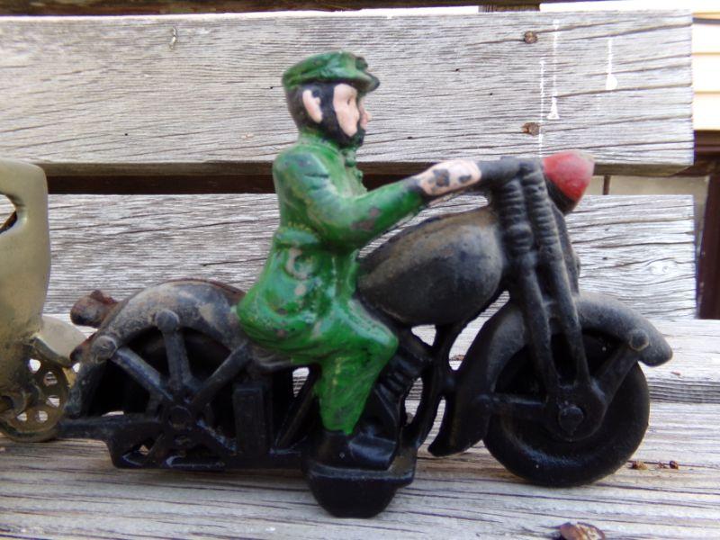 LOT 207  CAST IRON MOTORCYCLE COP & TOY CAR