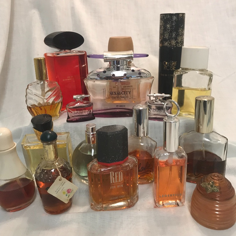 Lovely collection of opened and mostly full perfume bottles. Names like Avon, Sex and the City, Este Lauder and Reese Witherspoon and a men's cologne Red for Men. See images. Sterling Transitions cannot verify contents of bottles. Shipping available.