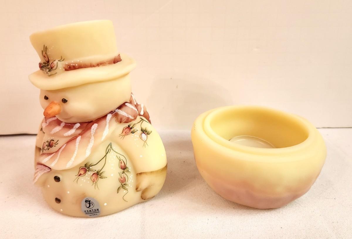 Lot #207 Fenton Art Glass Snowman Fairy Light - GLOWS