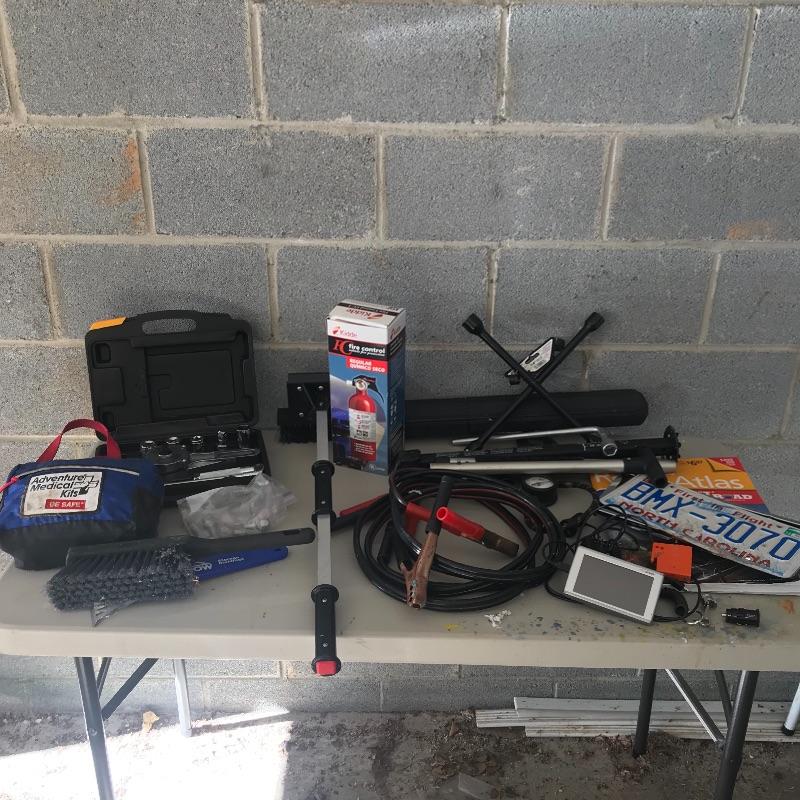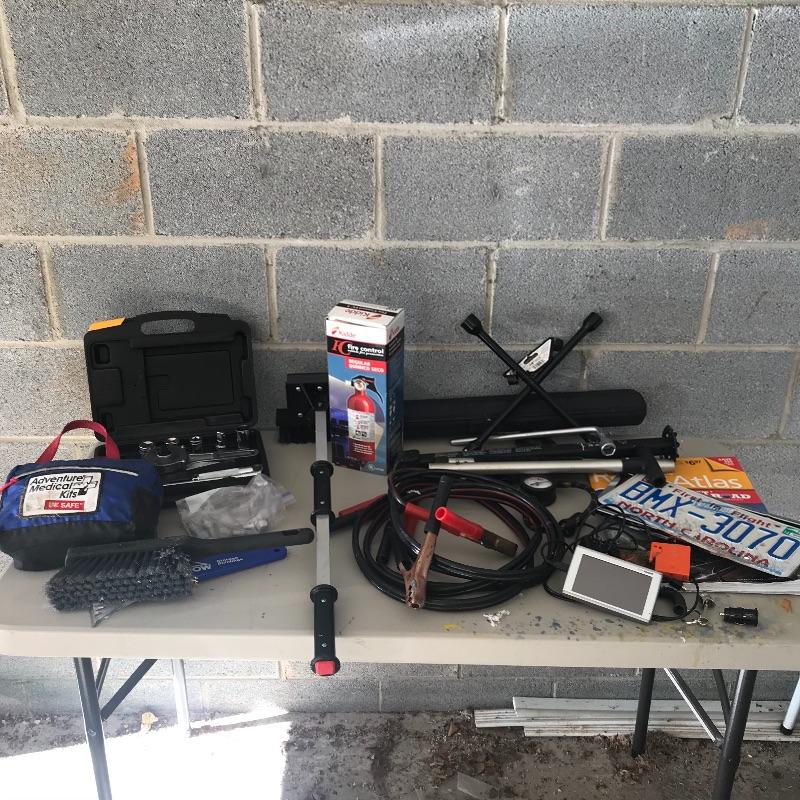 2010 Nuvi gaming turns on but never got passed loading maps. Includes jumper cables, EZ Lugnut removal tool, adventure medical kit, atlas, tire pressure gauge, new fire extinguisher and more. Local pick up only.