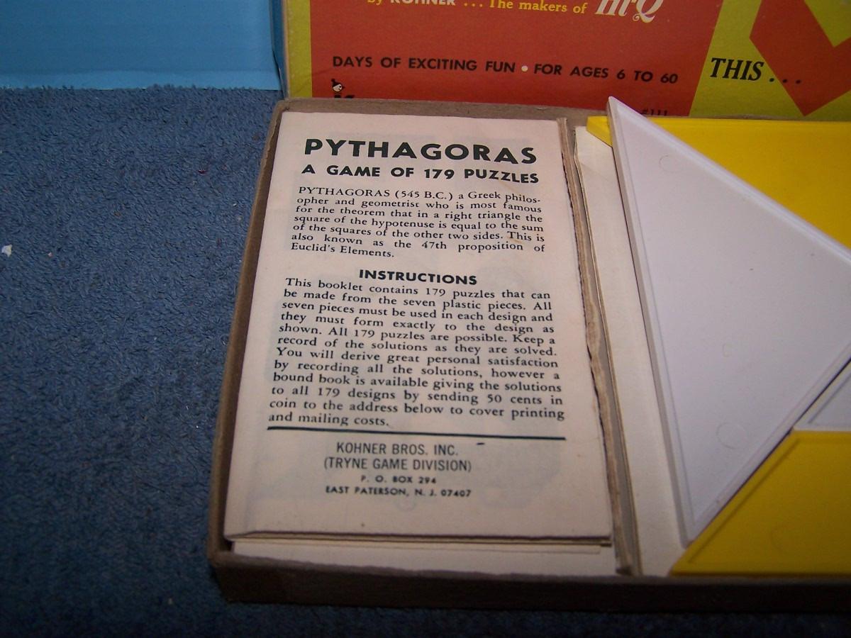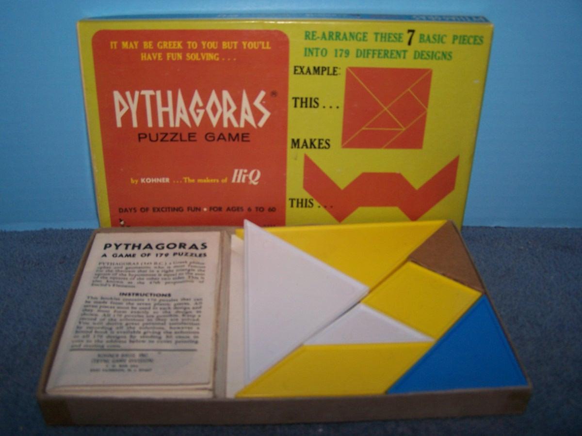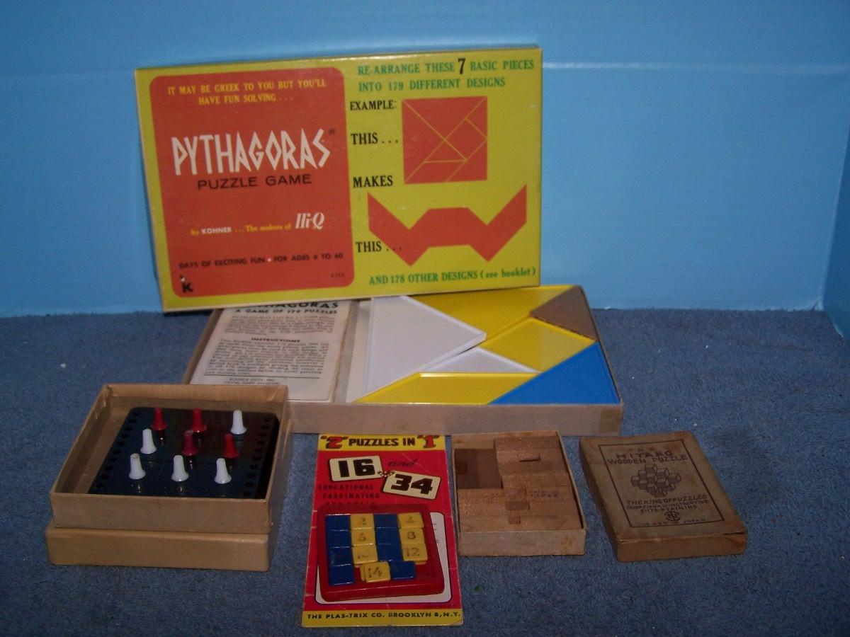 THESE ARE WONDERFUL VINTAGE PUZZLES AND GAMES! PYTHAGORUS HAS 1 HOMEMADE PIECE. ALL TOYS HAVE BEEN PLAYED WITH..