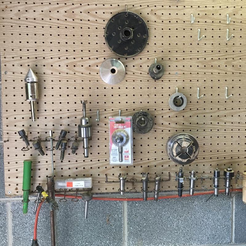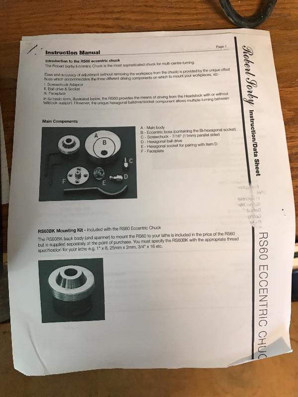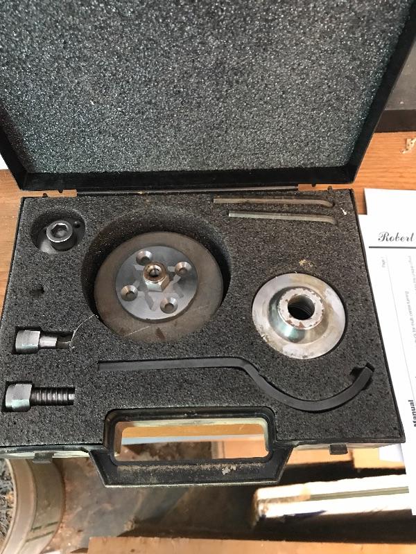 Assortment of accessories for a Lathe including Robert Sorley eccentric lathe chuck model # RS60 in case and more.