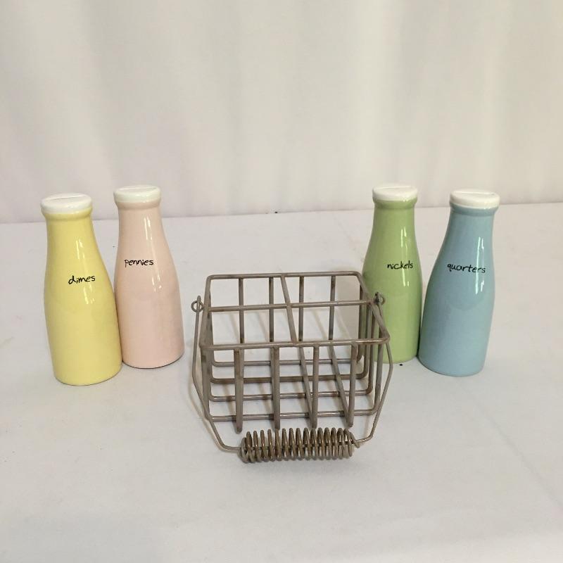 Got some extra time right now, why not count your coins with this nifty assortment of money banks that includes a battery operated coin counter that requires new batteries and measures 5”D x 8.5” tall.