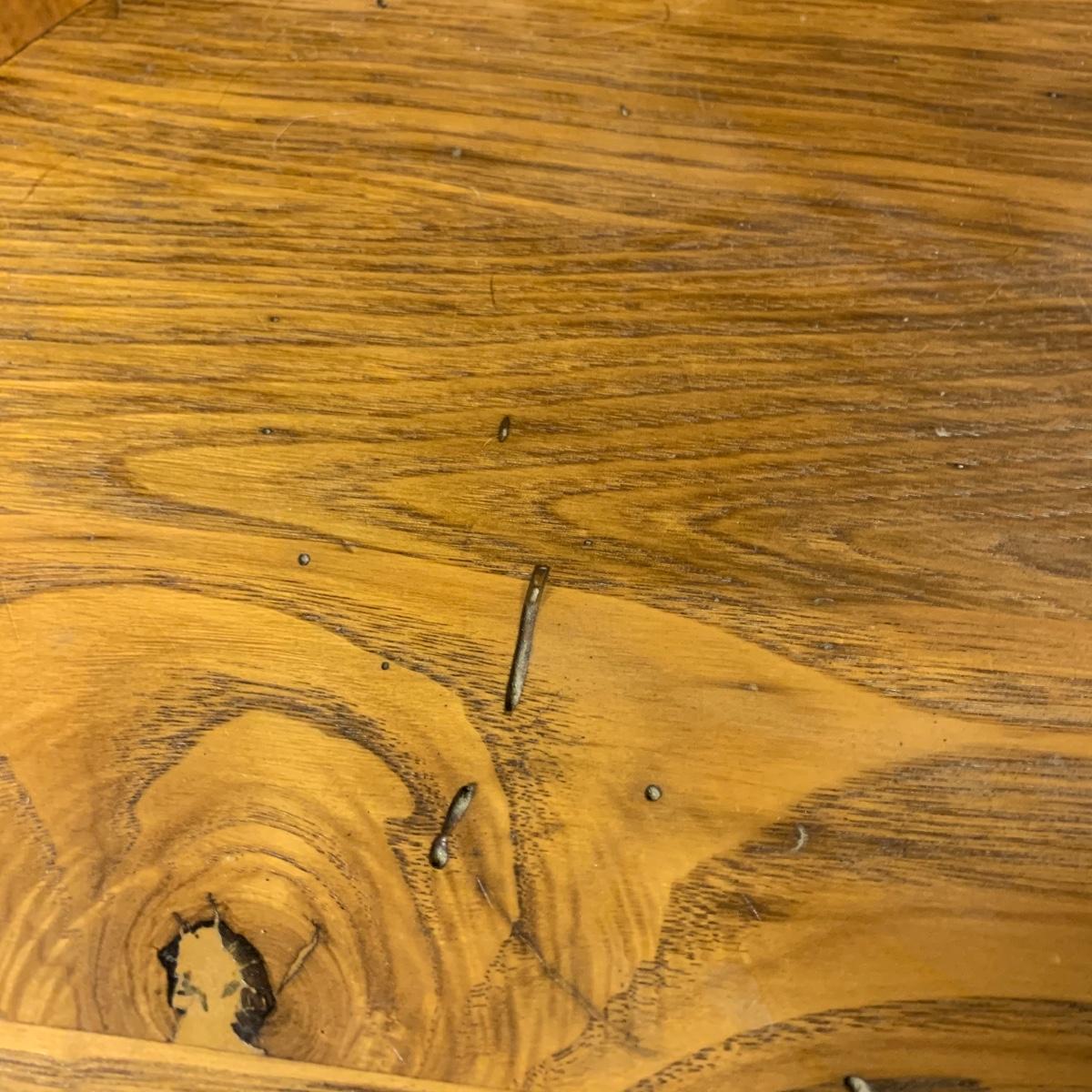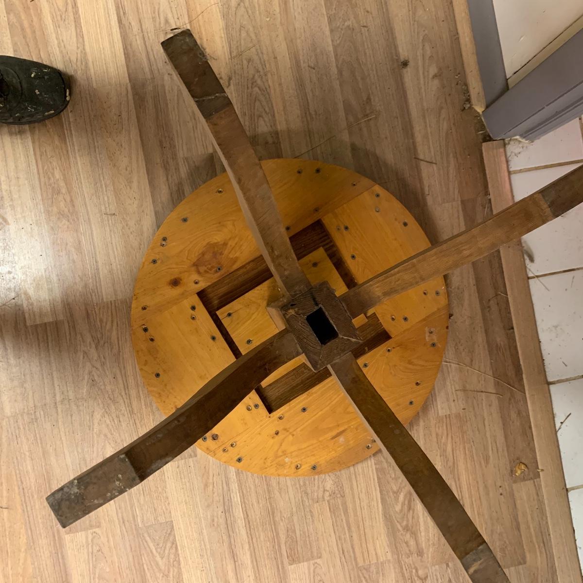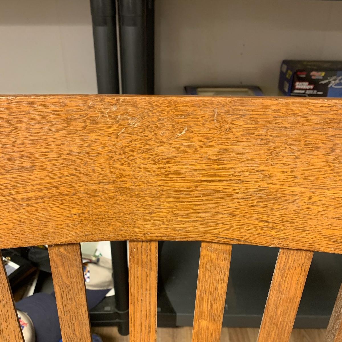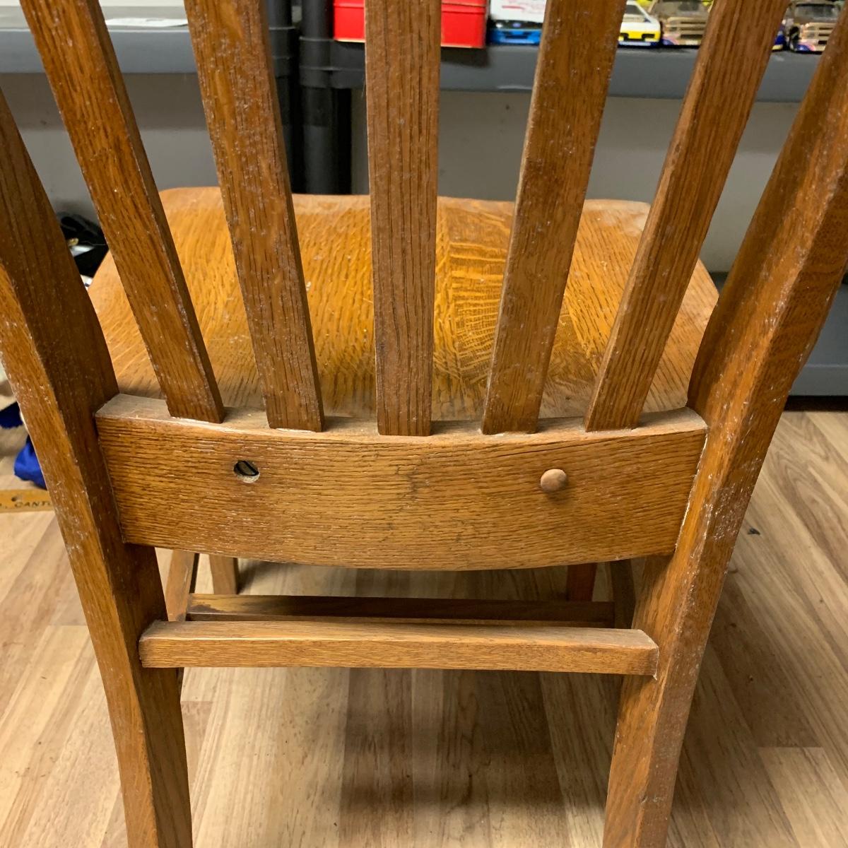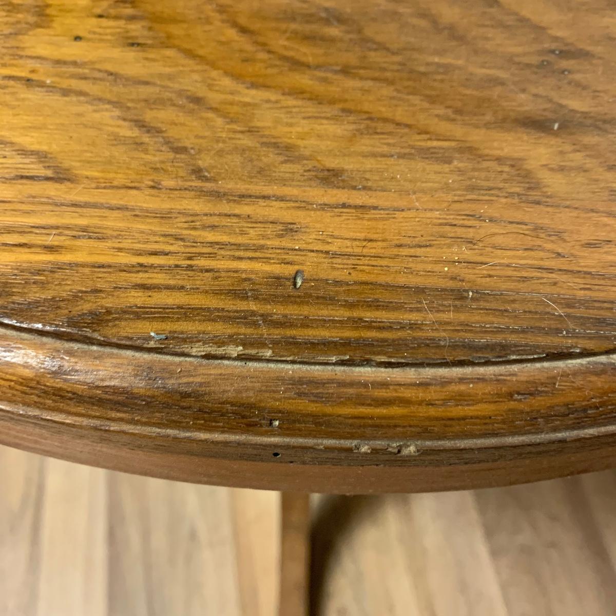 Check out this cute pair! The table is a 22” round table that stands on three legs and measures 23” tall. The chair is a sturdy classic straight back and measures 35” tall X 18” wide X 17” deep. The seat height is a 17.5 inches. Both are in good condition. Local pickup only.