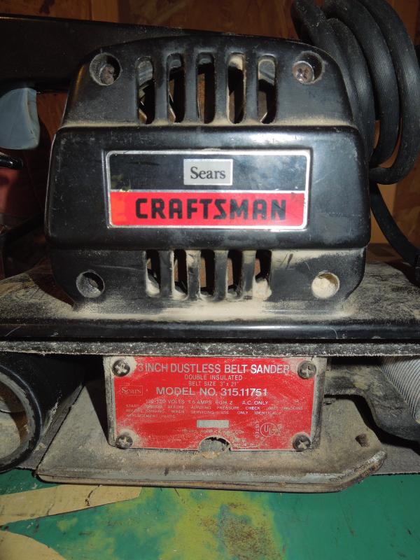 Sears Craftsman 21" L x 3" W Belt Sander model 315.11751 with bag. 7.5 amp. No sanding paper. Dustless. In very good condition.