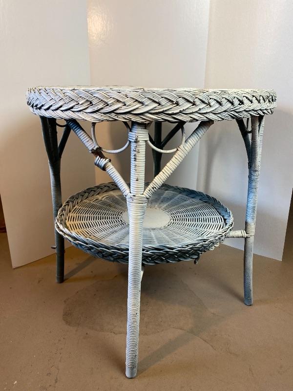 Lot# 207 Vintage 2 Tier Wicker Table 24” Round over 20”