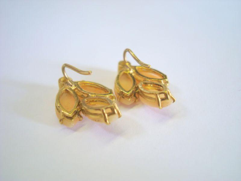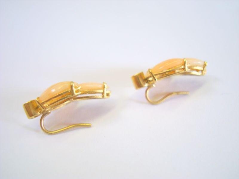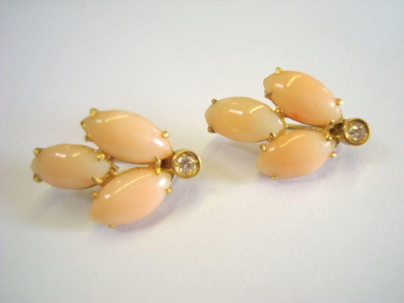 Very nice earring pair 18kt with two diamonds and rose quartz (?)