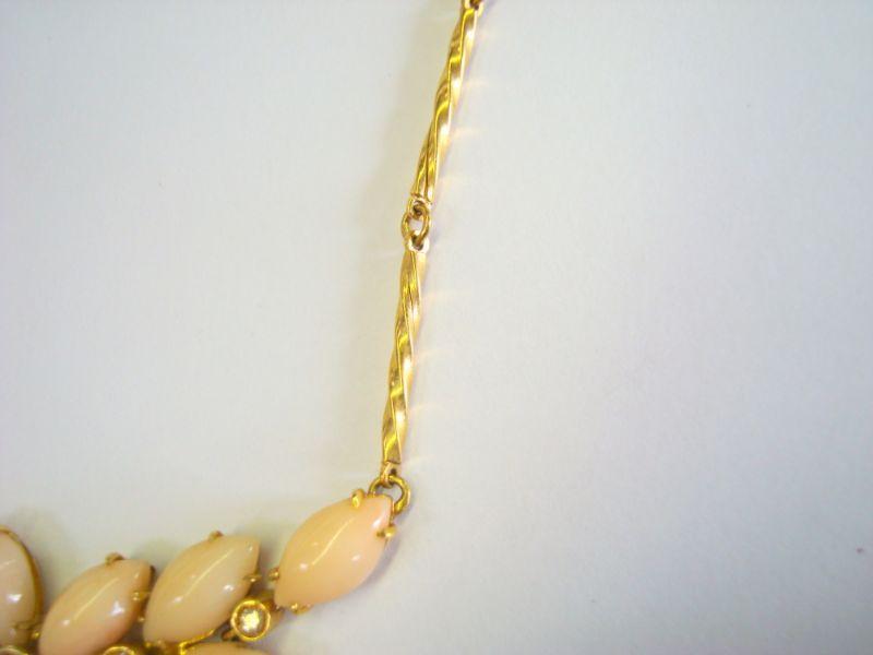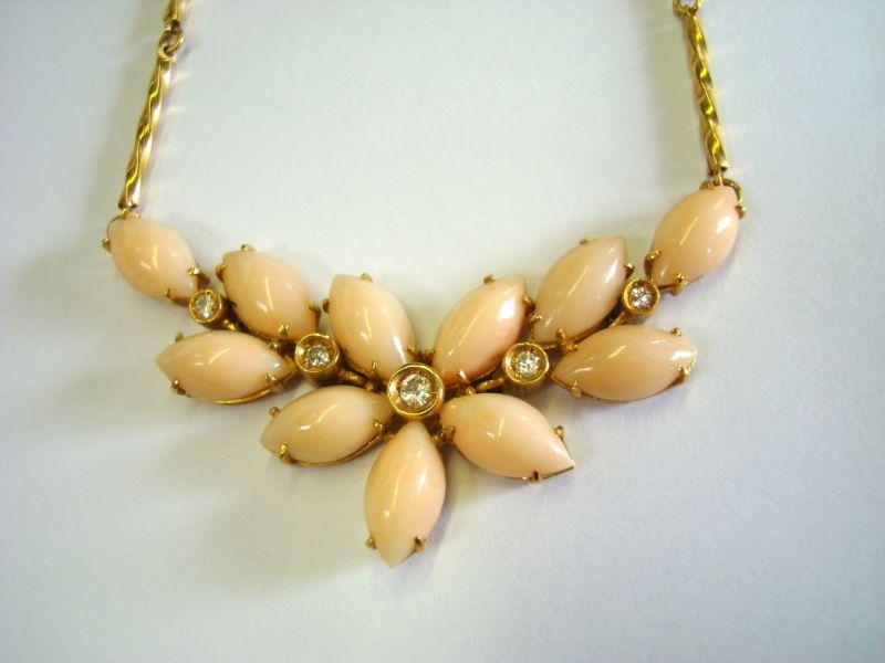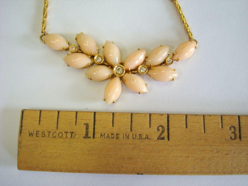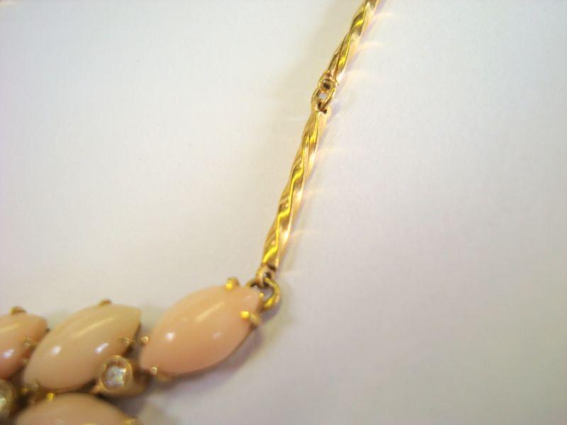 Lot 2075 - 18kt 5 Diamonds and Rose Quartz (?) Stones 15.3 Grams Necklace