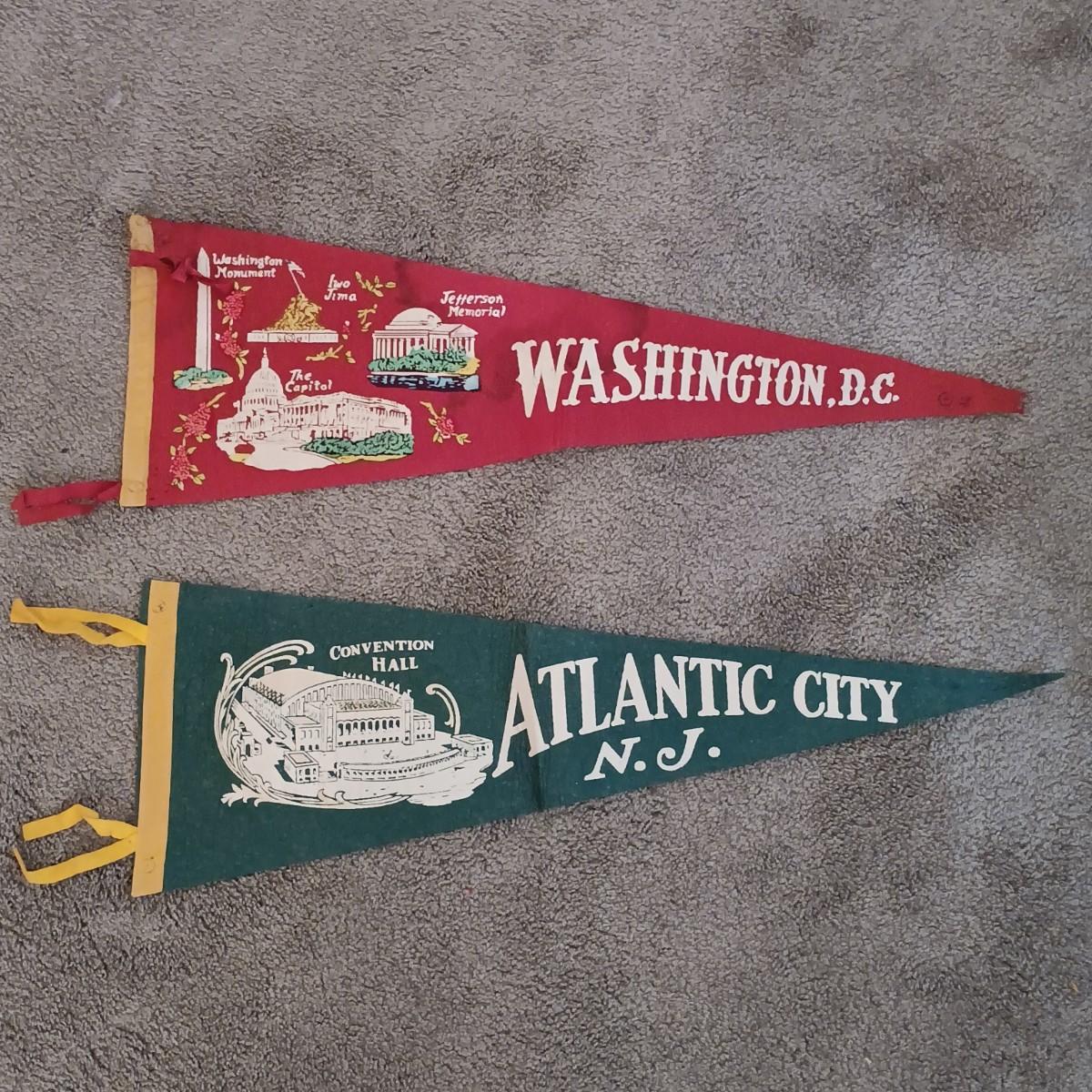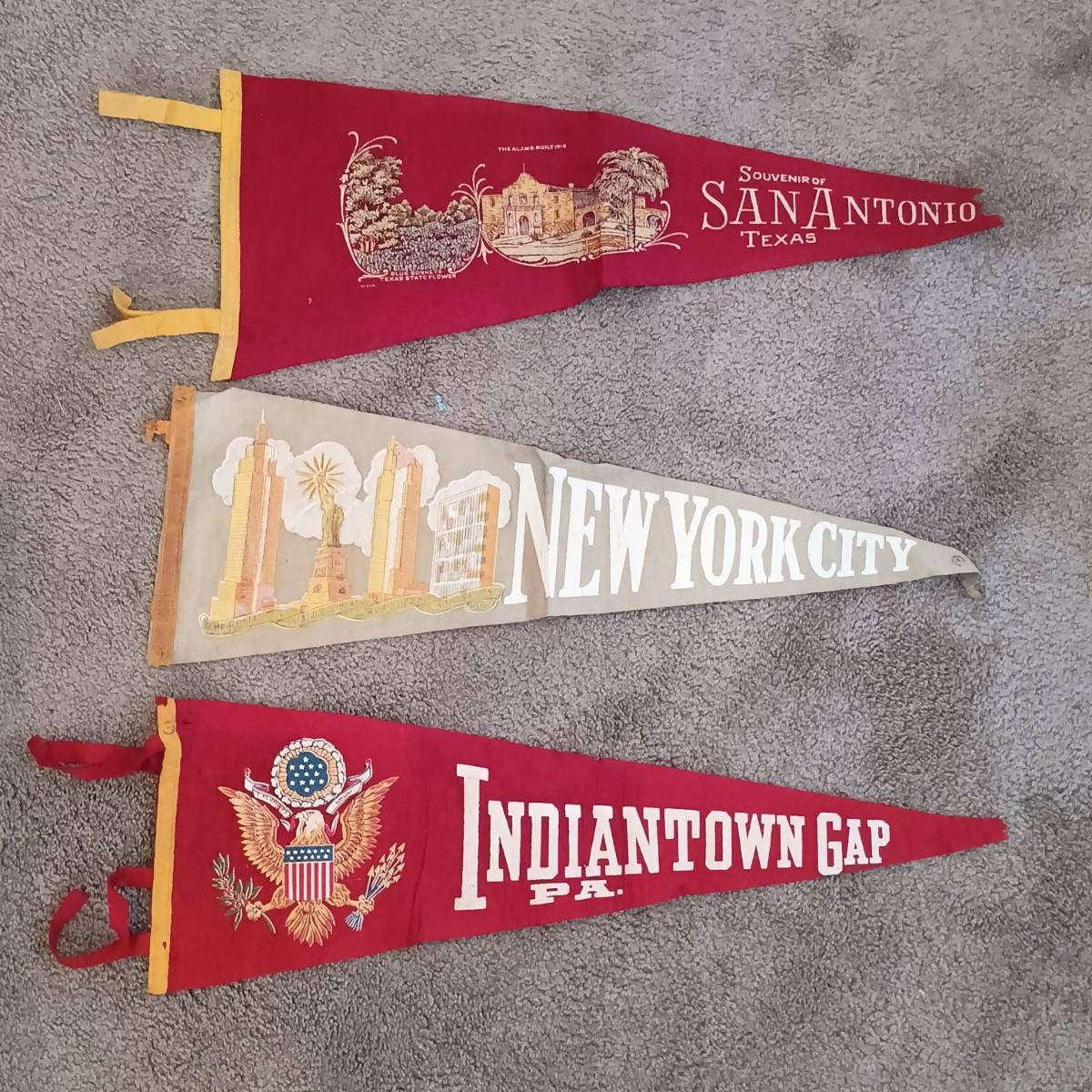 LOT 207B: MCM Italian Wood Cigarette Box, Vintage Pennants, Navajo-Style Rug & More