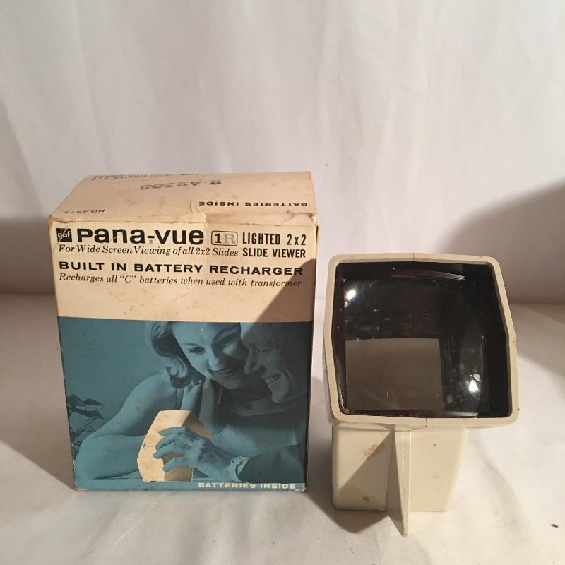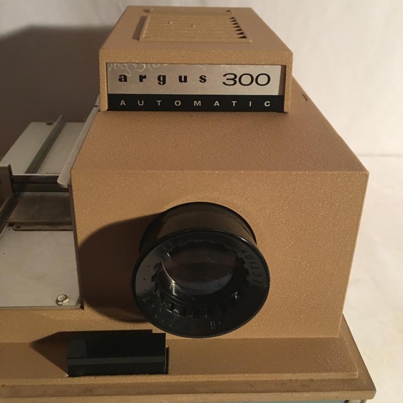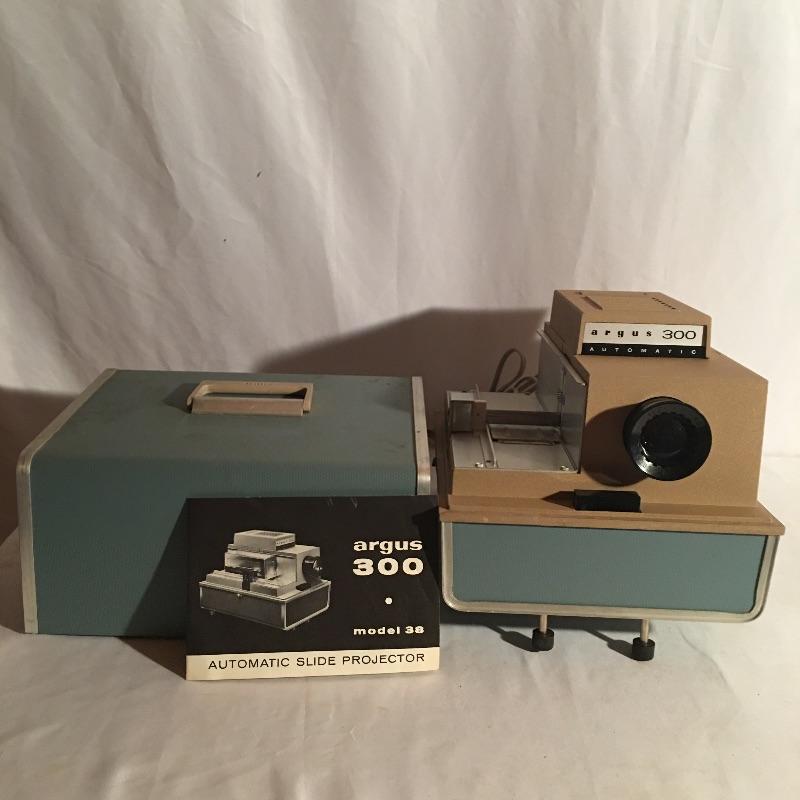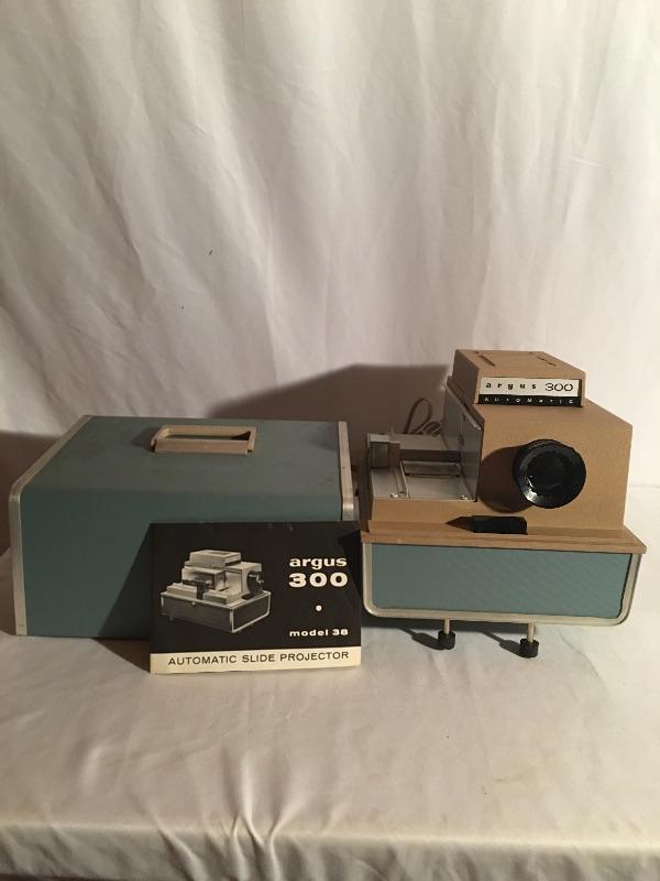 This Argus 300 model# 38 come in its own carrying case and owners manual and also includes a Pana-Vue 2 x 2 lighted slide viewer, Kenco trans-sorter and Micoette pocket-vue. You can view all your slides with this working projector. Pans-Vue was not tested as it needs batteries.