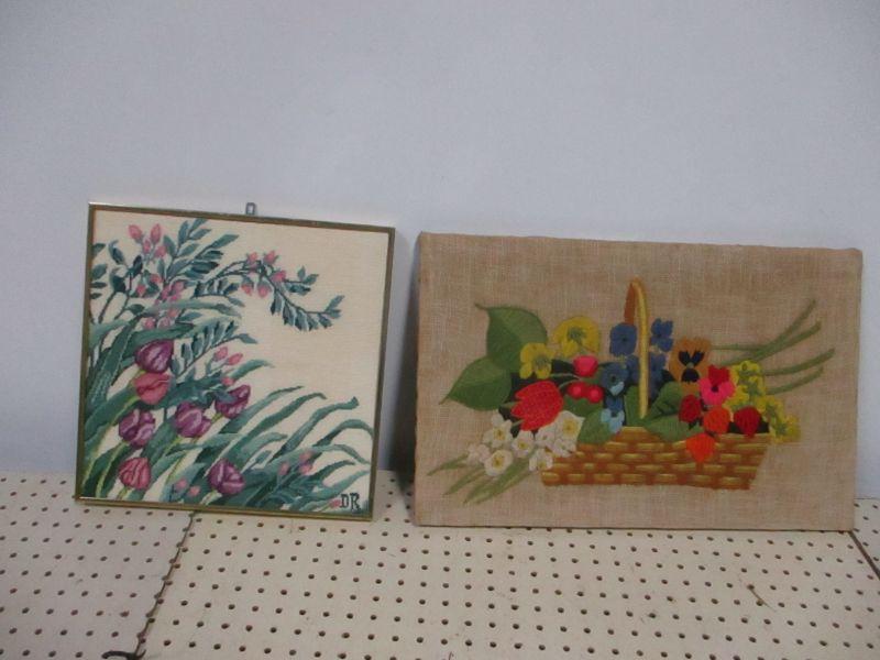 Lot 208 - Flower Crotched Wall Hangings Needlepoint and embroidery.