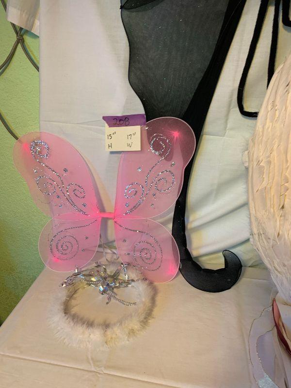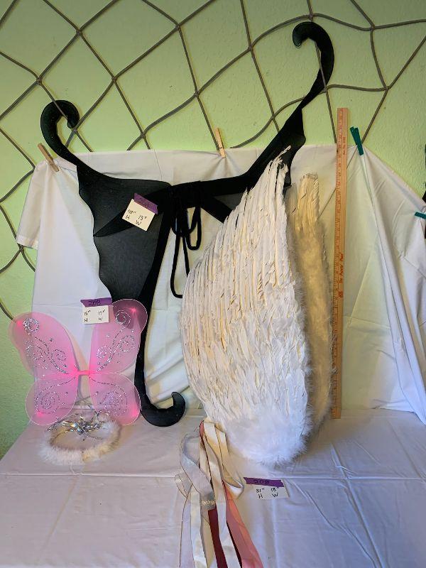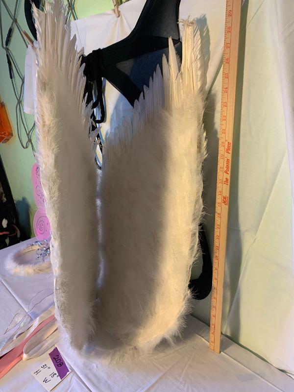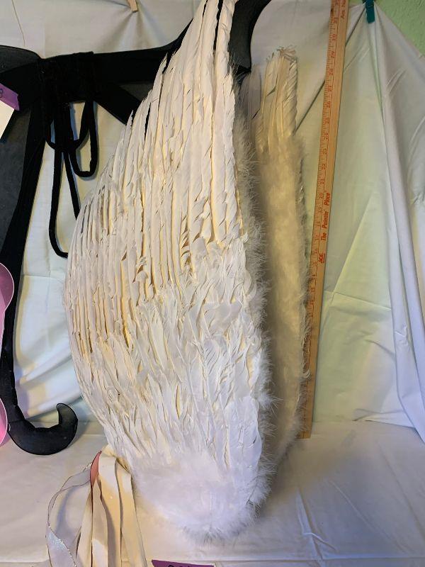 Wings: White Feathered large realistic feathers, Black wings, pink wings, and feather head wear.