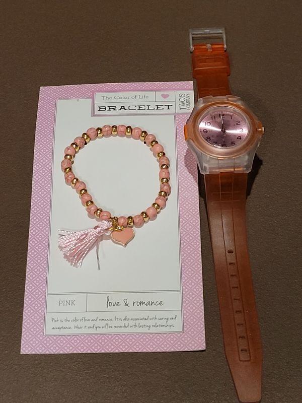 Lot 208: NEW Pink Watch and Heart and Tassel Bracelet