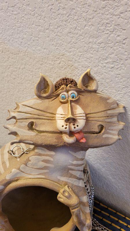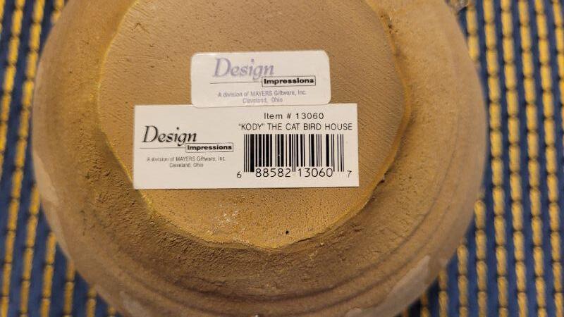 Lot 208: 12" Tall DESIGN IMPRESSIONS Patio Outdoor Art Cat Themed Bird Nest