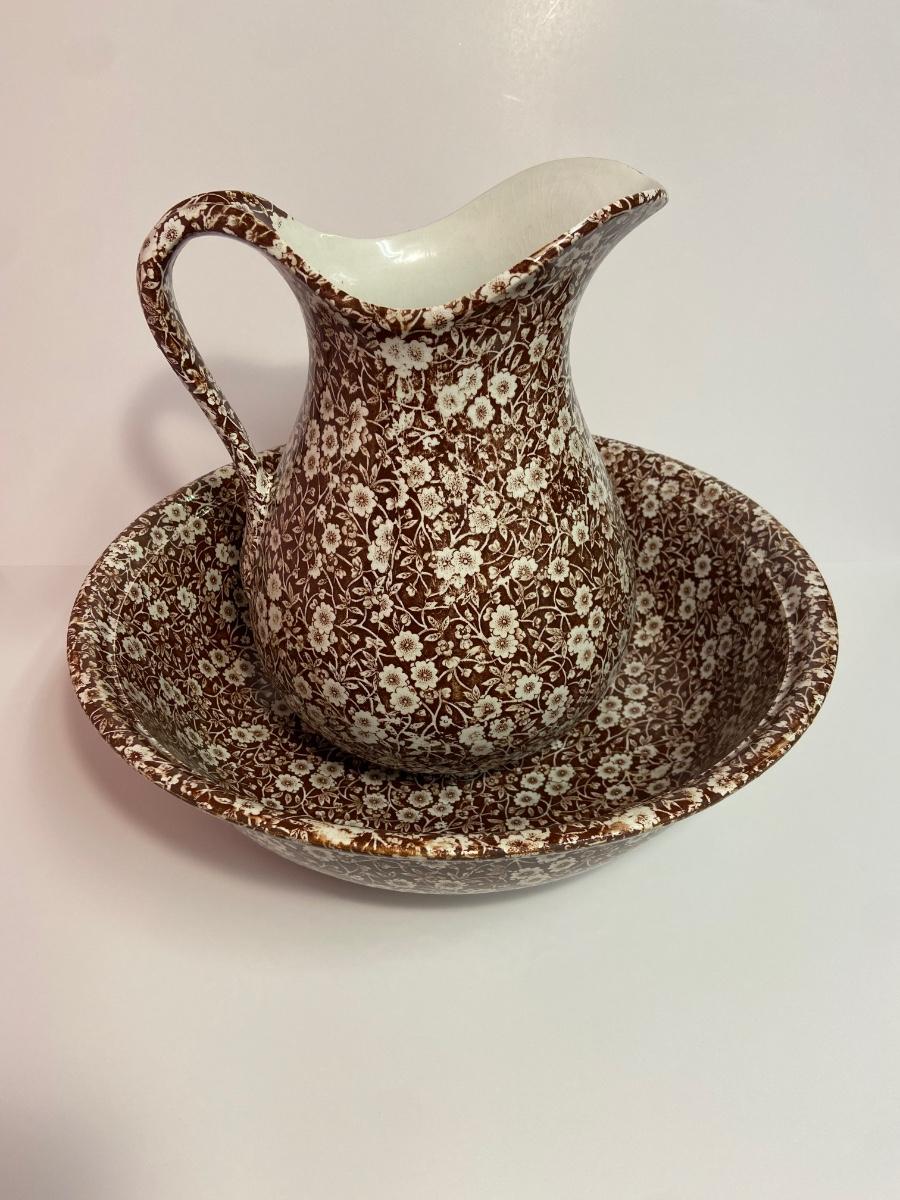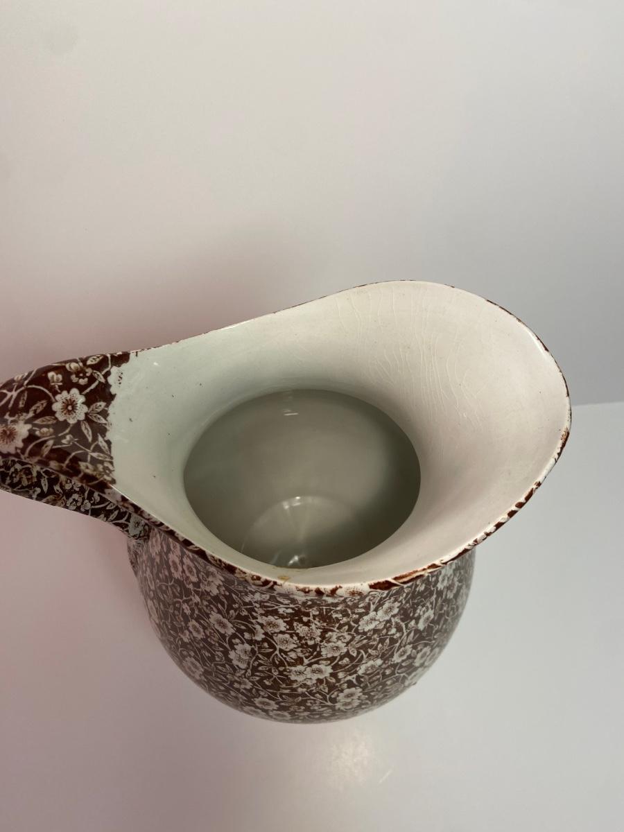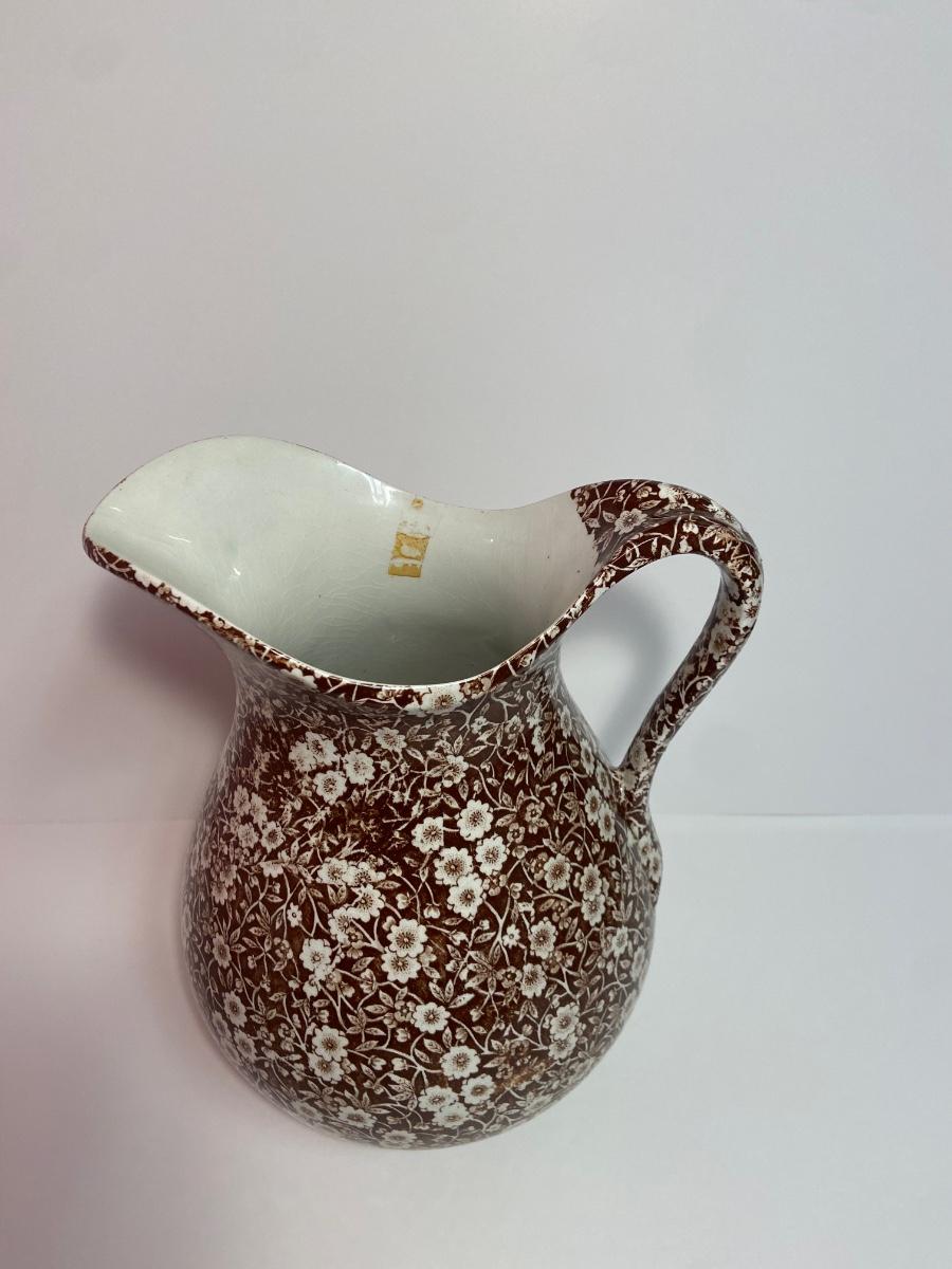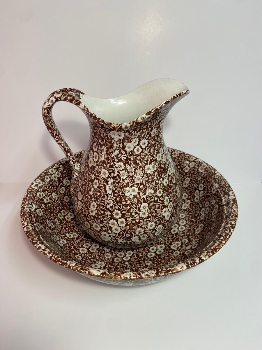 BROWN CALICO by Staffordshire, 128 oz OVERSIZED Pitcher & Wash Basin, Royal Crownford Ironstone, This is an EXTREMELY LARGE pitcher and wash basin. The pitcher is 11 1/2 inches tall and the wash basin is 15 inches across.